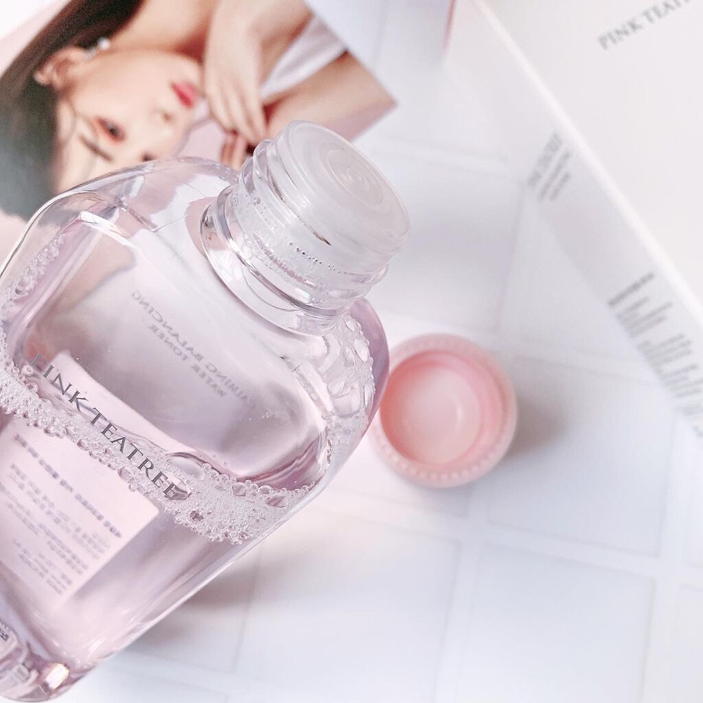 ティーツリーや、シカエキスを配合でニキビ、肌荒れ悩みをケアしてくれるトナー🩷 ピンク色は自然成分「ビタミンB12」本来の色だそう✨ サラサラテクスチャーで、さっぱりした使い心地✨