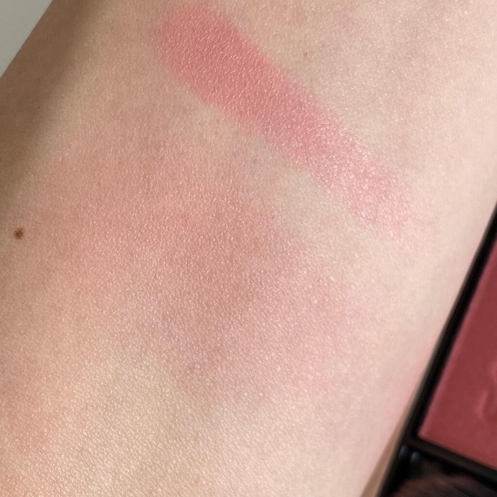 モーヴローズのチークカラーと黄味のあるシェルピンクのハイライトの組み合わせが可愛らしい『夢忘』に心奪われてゲットしていました🥺🩷 初めてのブラーリングカラーブラッシュはメルティングパウダーブラッシュとピュアカラーブラッシュを足して2で割ったような質感だなーって思った🤔 107番は目視できるくらいシルバーラメが入ってるんだけど思ったより気にならないという不思議。