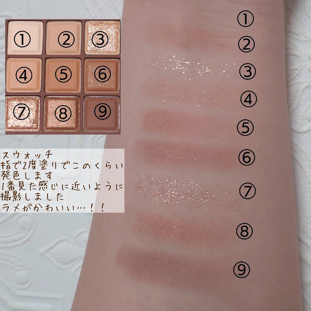 粉質も柔らかく、マットのカラーに関しては発色も淡いから、重ね塗りすればするほど深みが増していき、濃淡も調節しやすい🥰 ラメもキラッキラで可愛いし、組み合わせも自由自在で思いのままにメイクできる万能パレットです☺︎ 一押しはミルクラテ!陰影メイクが簡単にできます❤️🔥
