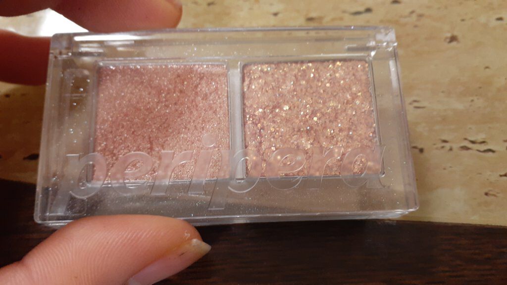 初めまして、るのです。上の写真はこの間買ったペリペラデュオポケットグリッターシャドウ01番です。左は細かいラメで左はザクザクの大粒ラメになっていて2色とも色味が最高‼️特に左は毎日メイクに使っています(^-^)ところで初投稿ということで自己紹...