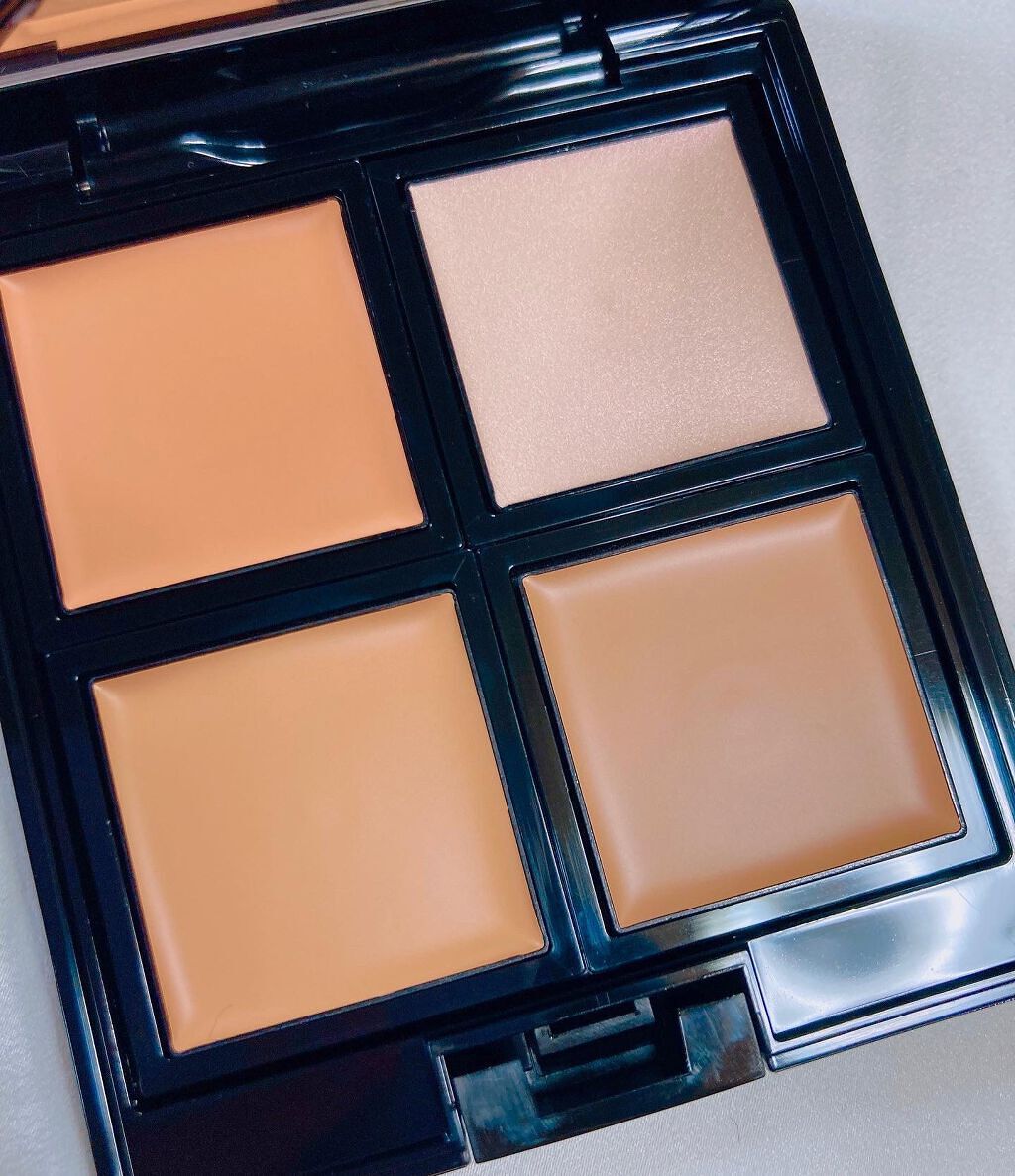 コントロールカラーとハイライトカラーがひとつになった4色のコンシーラーパレット🎨 濃いめシミ・クマは完全には隠せませんが密着度が高く崩れにくく色持ちがいいです 右上ハイライトカラーはナチュラルな仕上がりで上品な優しいツヤを演出してくれます☺️ 大きめの鏡が付いているのが嬉しいポイント🪞 崩れにくいコンシーラーをお探しの方におすすめです♪
