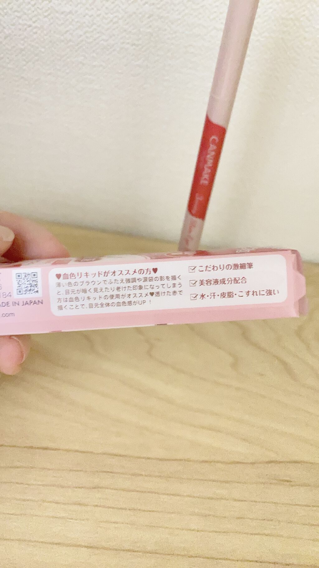 - ふたえ強調・涙袋の影・アイプランパー効果(※)に使える 激細筆の目元用透けルージュライナー 自然でリアルな血色を叶える、絶妙な透け発色ライナー♥ まるで目元にルージュを塗ったかのように血色感を与え、かわいい印象に仕上がります。 描いた線が太くならないよう、筆を根元から細くして 描きやすい距離と適度なコシになるように、短い筆に仕上げました。 汗・皮脂・こすれに強く、朝描いたラインも長時間キープされます。 (※メイクアップ効果による)