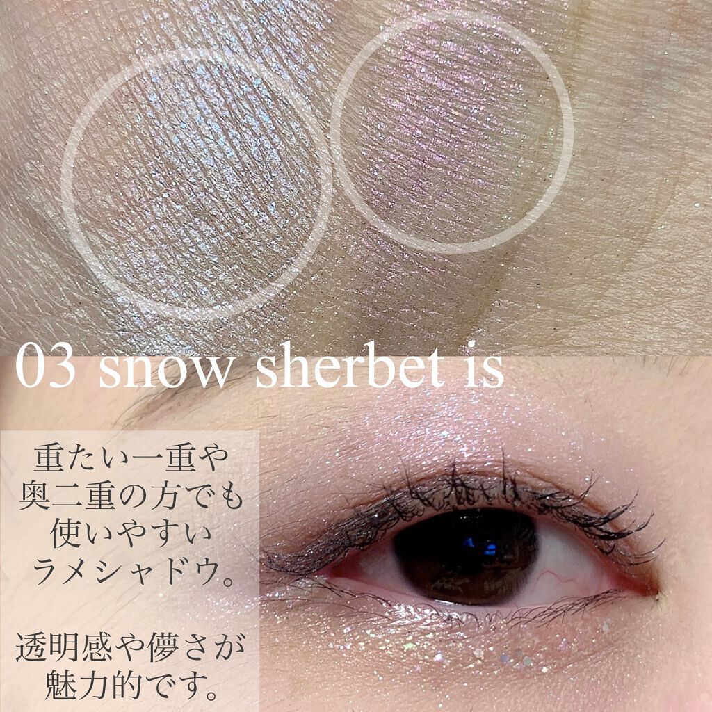 - 01 cherry blossoms ホウケイ酸(Ca/Al)、リンゴ酸ジイソステアリル、ジメチコン、トリ(カプリル酸/カプリン酸)グリセリル、タルク、(ジメチコン/ビニルジメチコン)クロスポリマー、ホウケイ酸(Ca/チタン)、ジフェニルシロキシフェニルトリメチコン、シリカ、マイクロクリスタリンワックス、チャ葉エキス、ハス葉エキス、ベニバナ種子エキス、酢酸トコフェロール、マロン酸ジエチルヘキシルシリンギリデン、合成フルオロフロゴパイト、イソセテス-10、フェノキシエタノール、BHT、酸化スズ、マイカ、酸化チタン、酸化鉄、カルミン、赤202 02 pop festivaloon リンゴ酸ジイソステアリル、ホウケイ酸(Ca/Al)、ジメチコントリ(カプリル酸/カプリン酸)グリセリル、タルク、合成フルオロフロゴパイト、(ジメチコン/ビニルジメチコン)クロスポリマー、ジフェニルシロキシフェニルトリメチコン、シリカ、マイクロクリスタリンワックス、チャ葉エキス、ハス葉エキス、ベニバナ種子エキス、酢酸トコフェロール、マロン酸ジエチルヘキシルシリンギリデン、イソセテス-10、フェノキシエタノール、BHT酸化スズ、マイカ、酸化チタン、酸化鉄、酸化クロム、コンジョウ、赤202 03 snow sherbet is リンゴ酸ジイソステアリル、ホウケイ酸(Ca/Al)、ジメチコン、トリ(カプリル酸/カプリン酸)グリセリル、合成フルオロフロゴパイト、タルク、(ジメチコン/ビニルジメチコン)クロスポリマー、ジフェニルシロキシフェニルトリメチコン、シリカ、マイクロクリスタリンワックス、チャ葉エキス、ハス葉エキス、ベニバナ種子エキス、酢酸トコフェロール、マロン酸ジエチルヘキシルシリンギリデン、イソセテス-10、フェノキシエタノール、BHT、酸化スズ、マイカ、酸化チタン、カルミン、コンジョウ