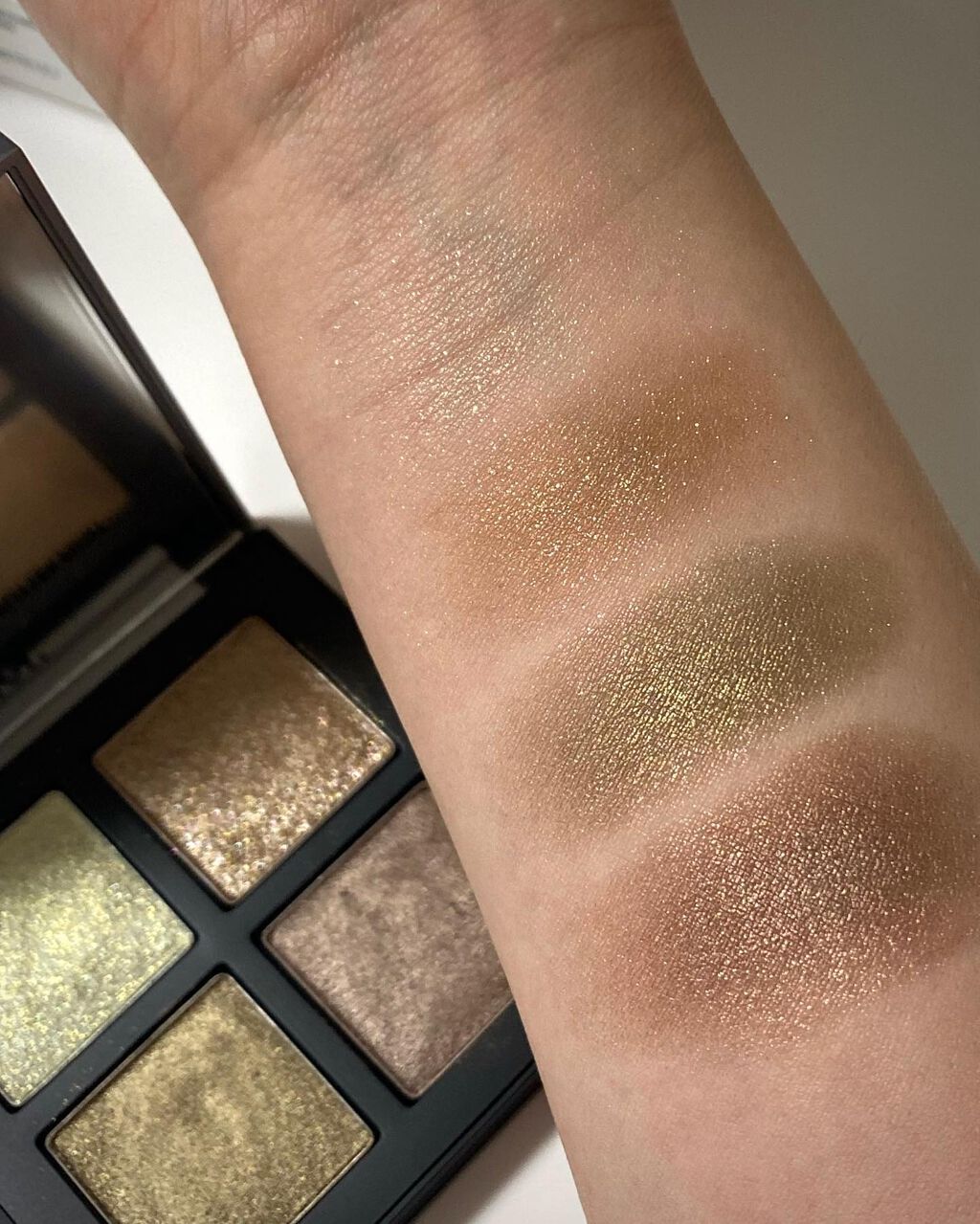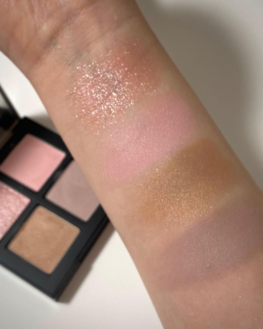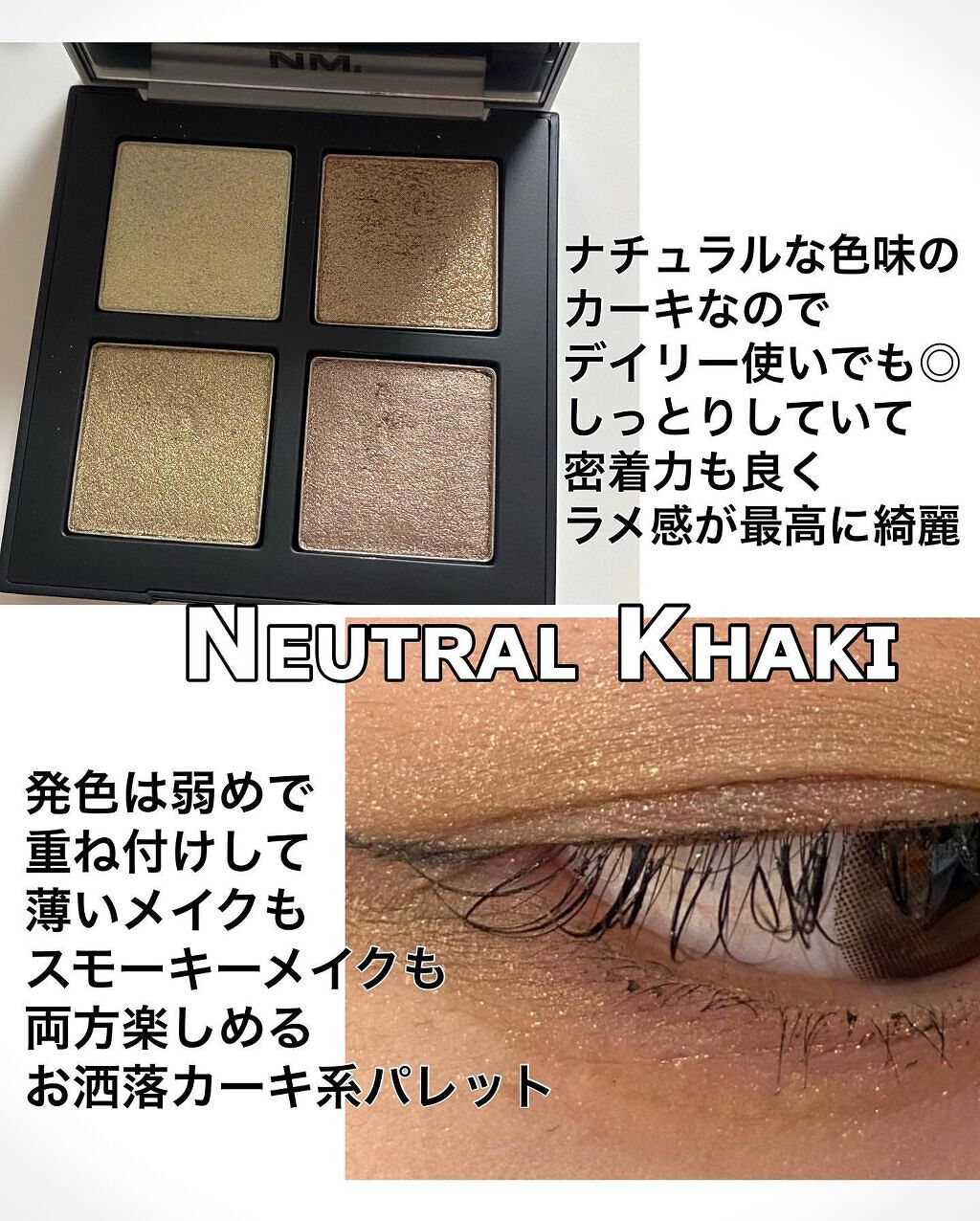 スモーキーでクールな雰囲気のアイパレット! カーキぽいカラーやピンクカラーなど、様々なカラーが入っているので、その日の気分で雰囲気の違うアイメイクを楽しめます! 粉質が凄くしっとりとしていて肌馴染みが良く、 捨て色無しの絶妙な配色がとっても使いやすいです♪ 柔らかくピタッと密着し日差しのように美しく輝くグリッター。 ベース、陰影、グリッターと3つの質感で自分だけのレイヤリング演出ができる。