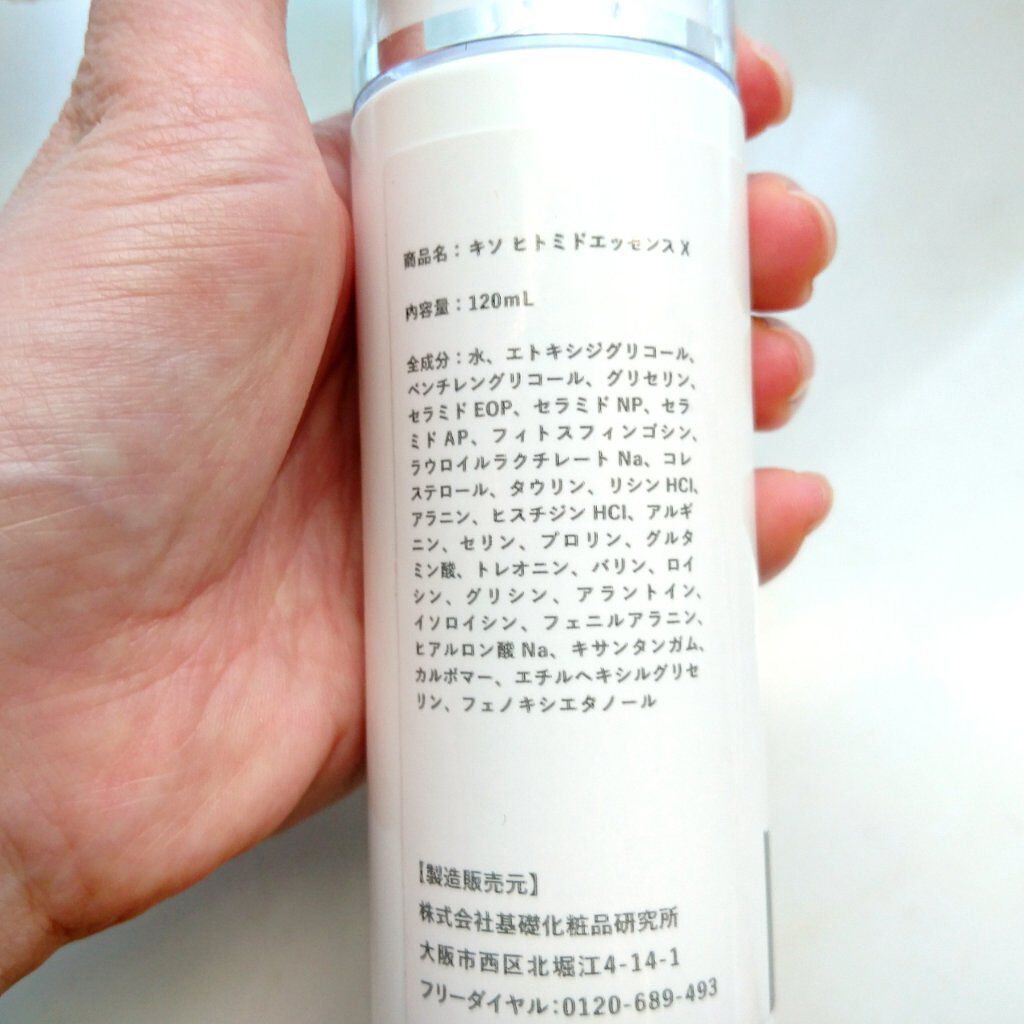 - 水、エトキシジグリコール、ペンチレングリコール、グリセリン、セラミドEOP、セラミドNP、セラミドAP、フィトスフィンゴシン、ラウロイルラクチレートNa、コレステロール、タウリン、リシンHCl、アラニン、ヒスチジンHCl、アルギニン、セリン、プロリン、グルタミン酸、トレオニン、バリン、ロイシン、グリシン、アラントイン、イソロイシン、フェニルアラニン、ヒアルロン酸Na、キサンタンガム、カルボマー、エチルヘキシルグリセリン、フェノキシエタノール
