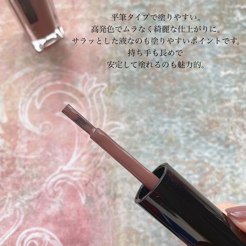 - 持ち手が長く描きやすい平筆でムラなく簡単に塗れる美しい発色が続くネイルカラー。