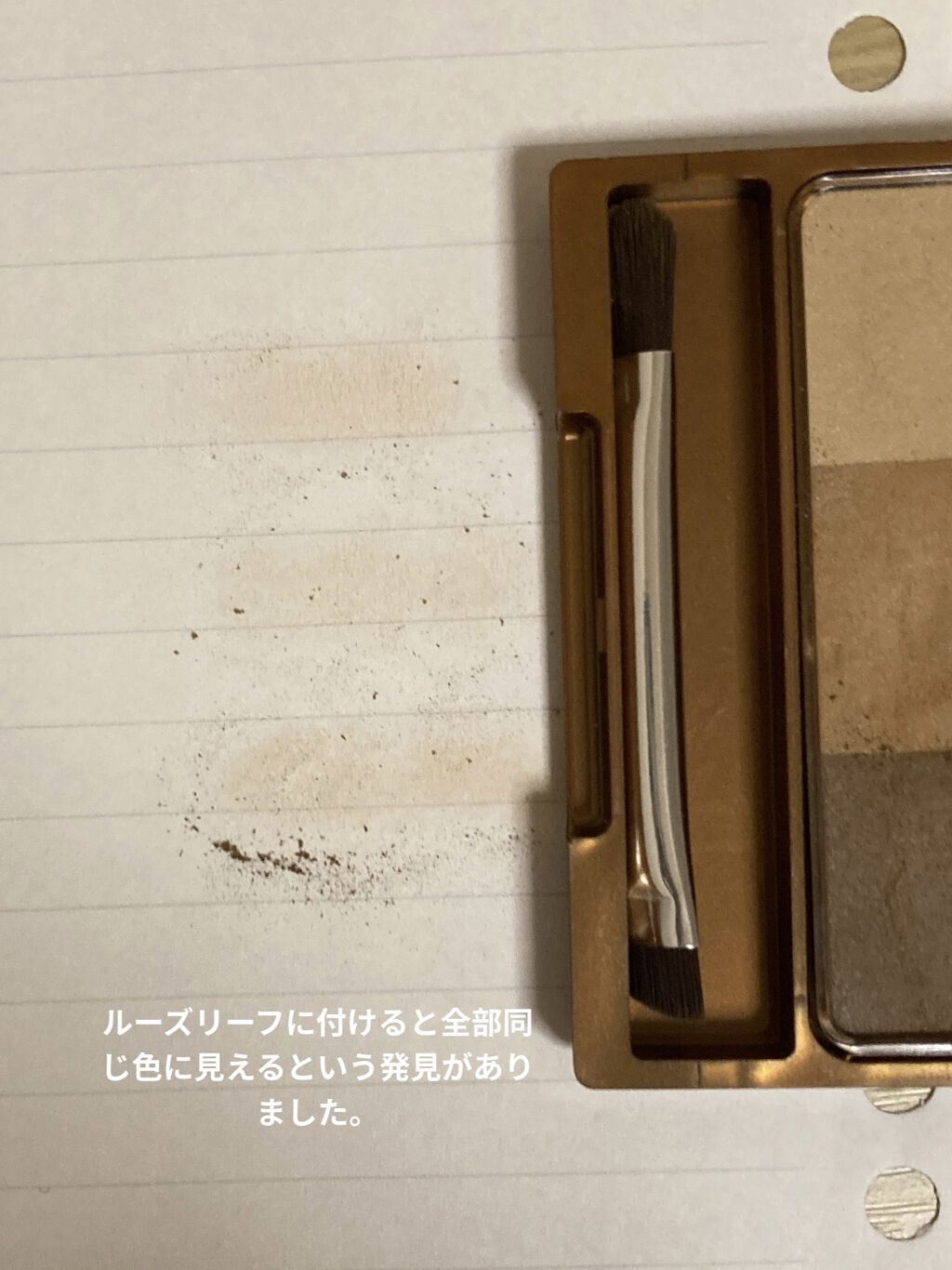 眉毛がめっちゃ茶色くなれる!眉毛でイキリたいからスクールメイクは絶対コレ!!大きい方のふさふさで全部に塗れるし小さい方のふさふさで隙間埋めたり枠描けたり!涙袋も描ける。1年半くらい使ってる!#早く底見えねェかな#1軍アイテム...