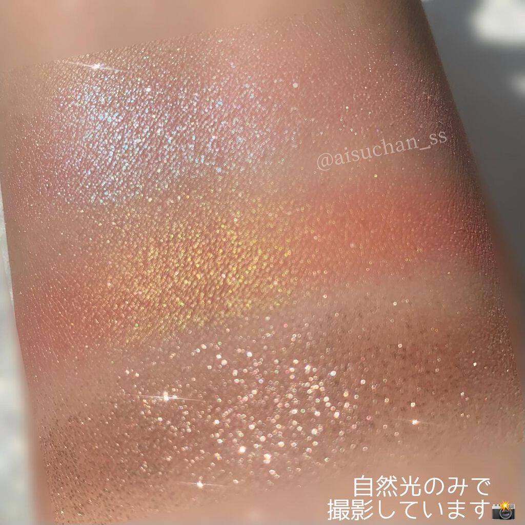 しっとりなめらかな粉質で、肌に光が溶け込む。 ツヤの美しさや発光具合は写真の通り。 ひと塗りで極上の艶を纏うことができます。 私が1番感動したのは 03 パールグロウ 水色やパープルをはじめとした細かいラメがぎっしり。 まるでダイヤモンドのような輝きでこれが最高💎 いざ肌に乗せると透明感たっぷりで白浮きしません。 今日アイシャドウとして使ってみたらまぶたが濡れたように艶めいて最高だった!! ラメ大好き芸人のみなさんは絶対チェックして欲しいです。 パケもしっかり可愛いです♡ 中身も見た目ももはや無敵。 これ、買わない理由ある??