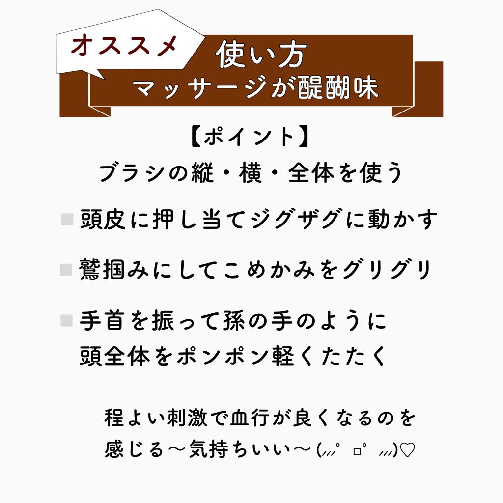 | 美容グッズ・美容家電ランキング第27位 | 頭皮をしっかり捉えてくれるのと、ブラシがクッションのようになって頭皮を刺激してくれます! | 詳細を見る | |