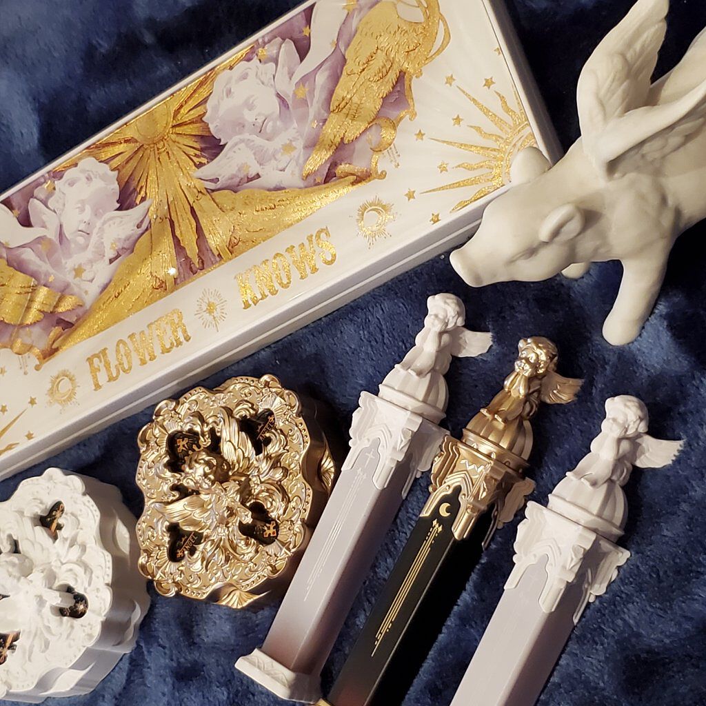 毎回デザインが天才すぎるFlowerKnows様のリトルエンジェルコレクション ハイライターを購入しました✨ 中身も細かく天使のデザイン彫られていて、この価格で買えていいものなのか!??という気分になります! ハイライトはパープルやブルーのラメが含まれているので肌に透明感がうまれます❄️