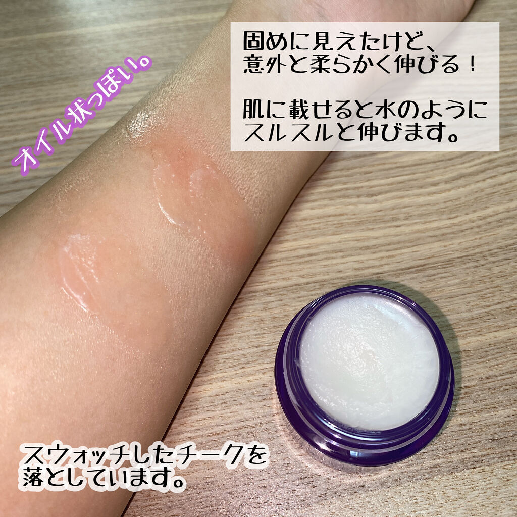 | バームが取ってみるとじんわりととろけてきて、なめらかなテクスチャーに!馴染ませやすくて使いやすいです。 | 詳細を見る | ||