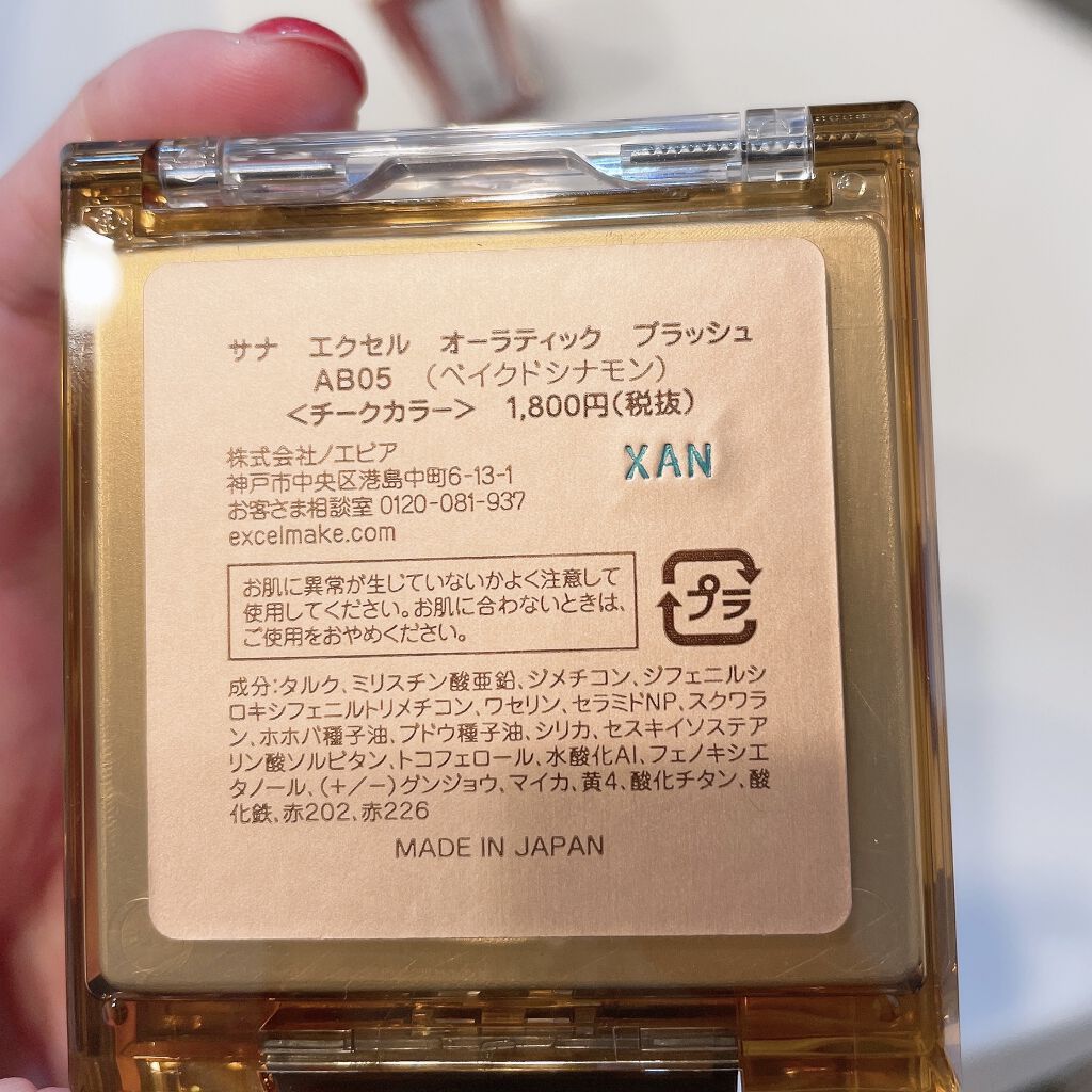 excelオーラティックブラッシュAB05ベイクドシナモン ¥1,980LIPS購入品ブラシ付きなので持ち運びに便利!◯1番上 艶めきハイライトカラー血色カラーと混ぜて使っても、単色でハイライトに使ってもいいそう。艶は弱めかな。サーモンピンク...