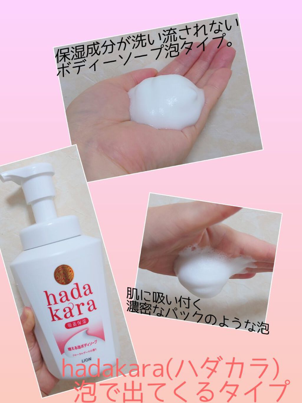hadakarahadakaraボディソープ泡で出てくるタイプフローラルブーケの香り本体550ml増える泡ボディーソープ♪♪1プッシュでたっぷり濃密な泡が出て、洗っている間にモコモコ増え全身を包み込みます✨(吸着保湿テクノロジー)で保湿成分複...