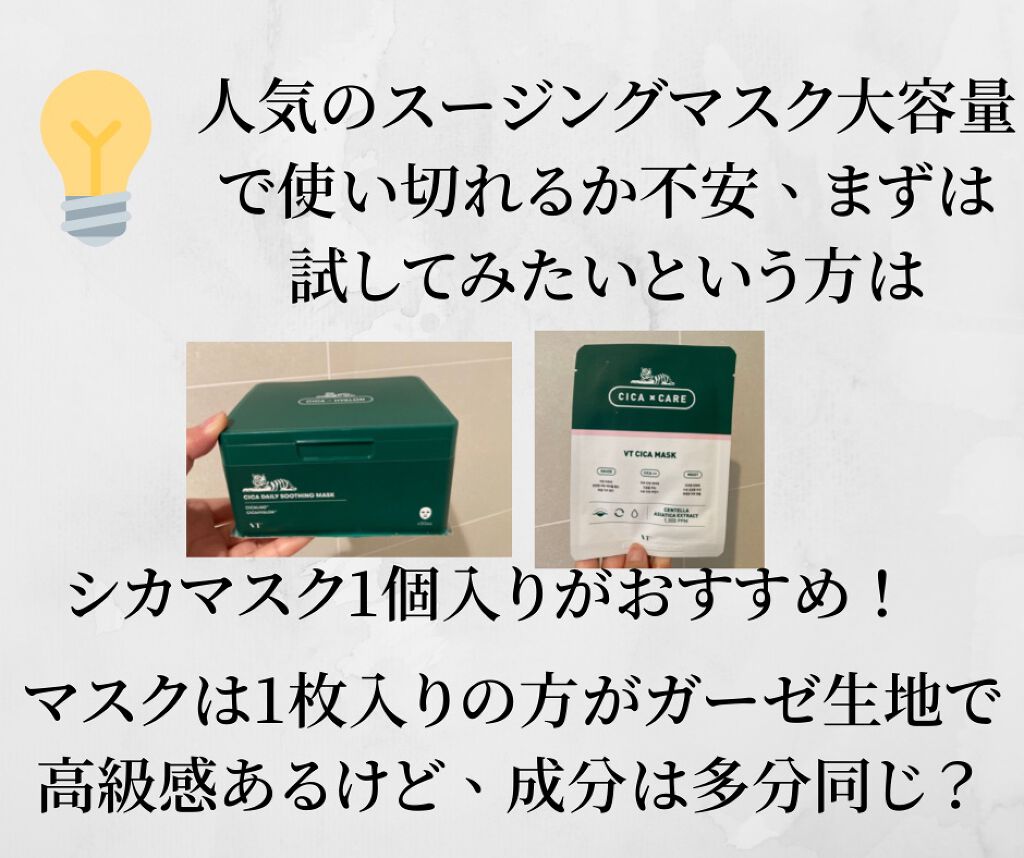 使い切りコスメVTCICAデイリースージングマスク(30枚入り)化粧水の後に使うタイプの皆んな大好きCICAのシートマスク。薄めのシート、でも美容液がひたひた。肌が乾燥しやすい日も安心して10分でゆらぎ肌ケアができます。取り出しやすいB...