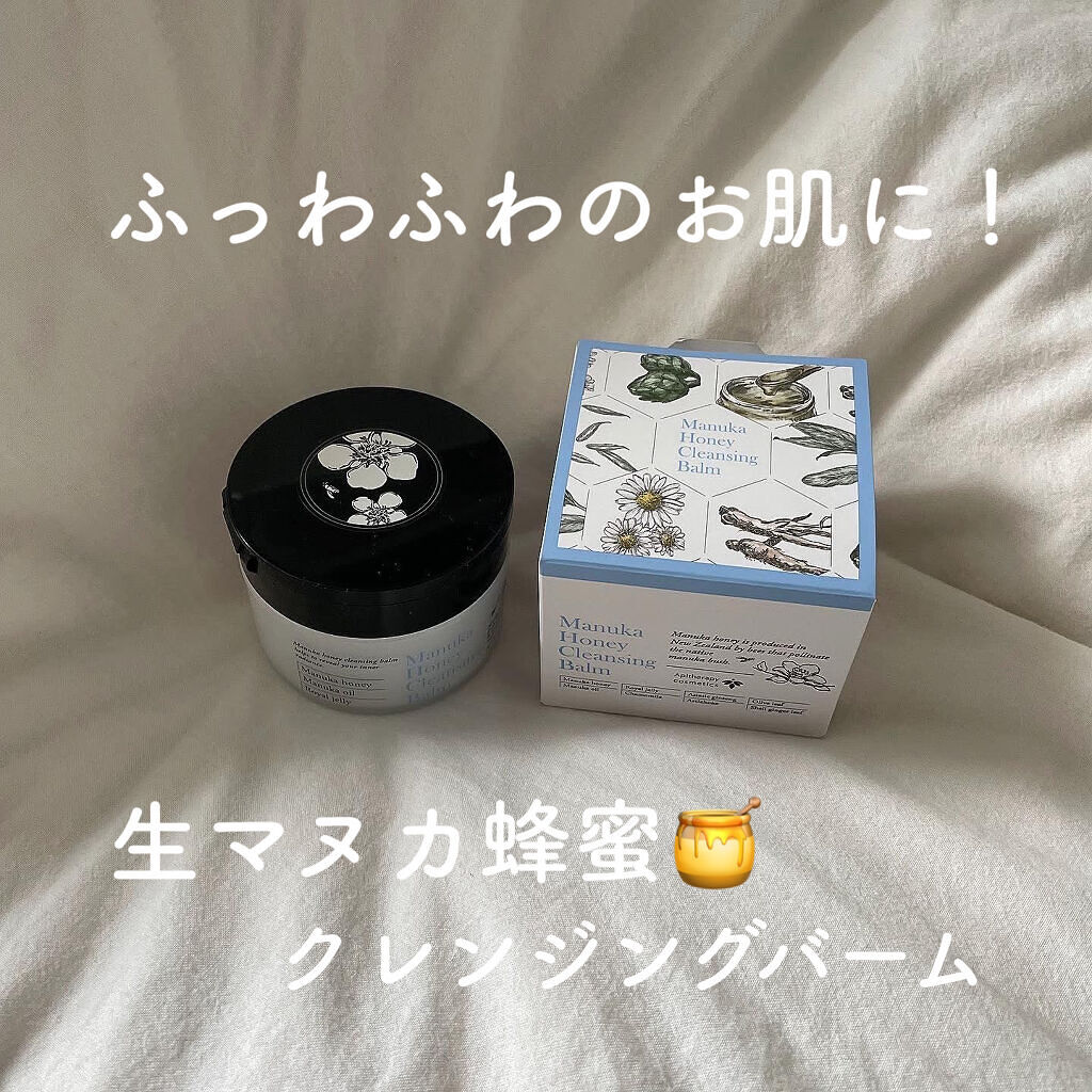 マヌカハニークレンジングバーム🍯.付属のスパチュラでバームを肌にのせて、肌温にとろりととろけるバームは、メイクの上でくるくるするとスルスルメイクと馴染む❤︎.マヌカハニーのおかげか、私は洗い上がりのしっとり感が感じられて満足🫶.抗菌成分を含む...