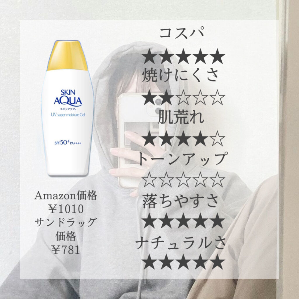 | 日焼け止め・UVケアランキング第155位 | テクスチャは水のような感じで伸びもよく、コスパも良い♡顔にも使えるしサラサラだし SPF50+ PA++++ | 詳細を見る | |