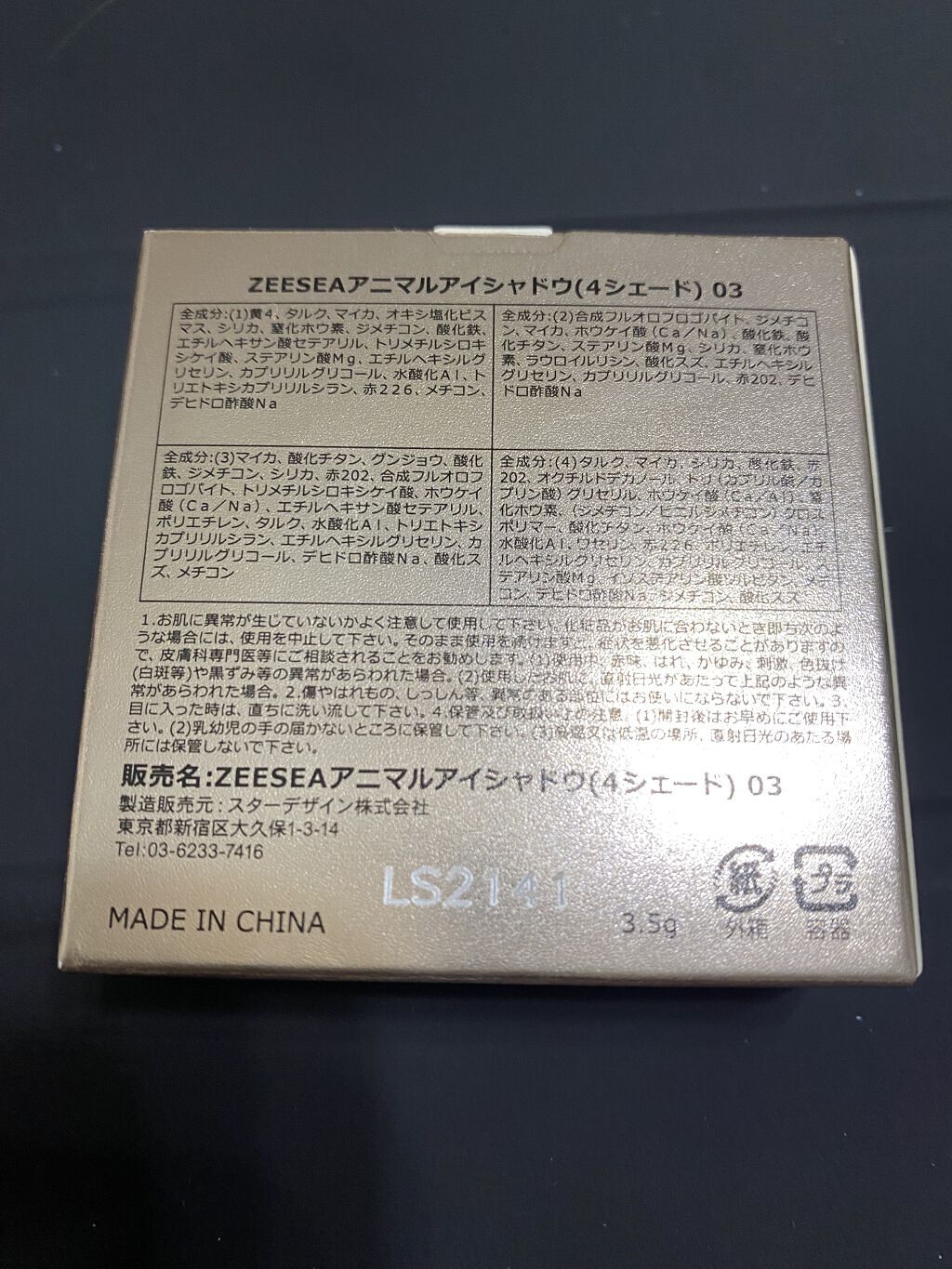 商品詳細情報ZEESEA アニマルアイシャドウ(4シェード)