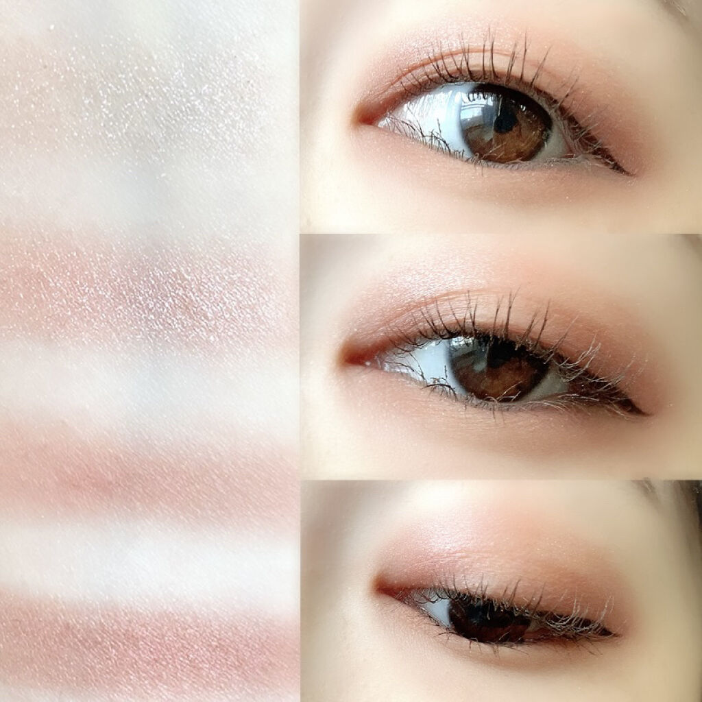 まず、発色!!!!!鬼!!!! マットカラーの上2色の発色が鬼ほどいいですので、柔らかいブラシで取るのがおすすめです。 ベイクドピンクとボルドーとオレンジベースのラメが同じような配色なので統一感はでるし、一気に深みのある主役級アイメイクが出来上がります。 そして右下のハイライト!これ!いいですね!!! クリームぽい質感なのにペタペタせず、発光🌟 ピンクホワイトのカラーなので肌なじみもGood💪