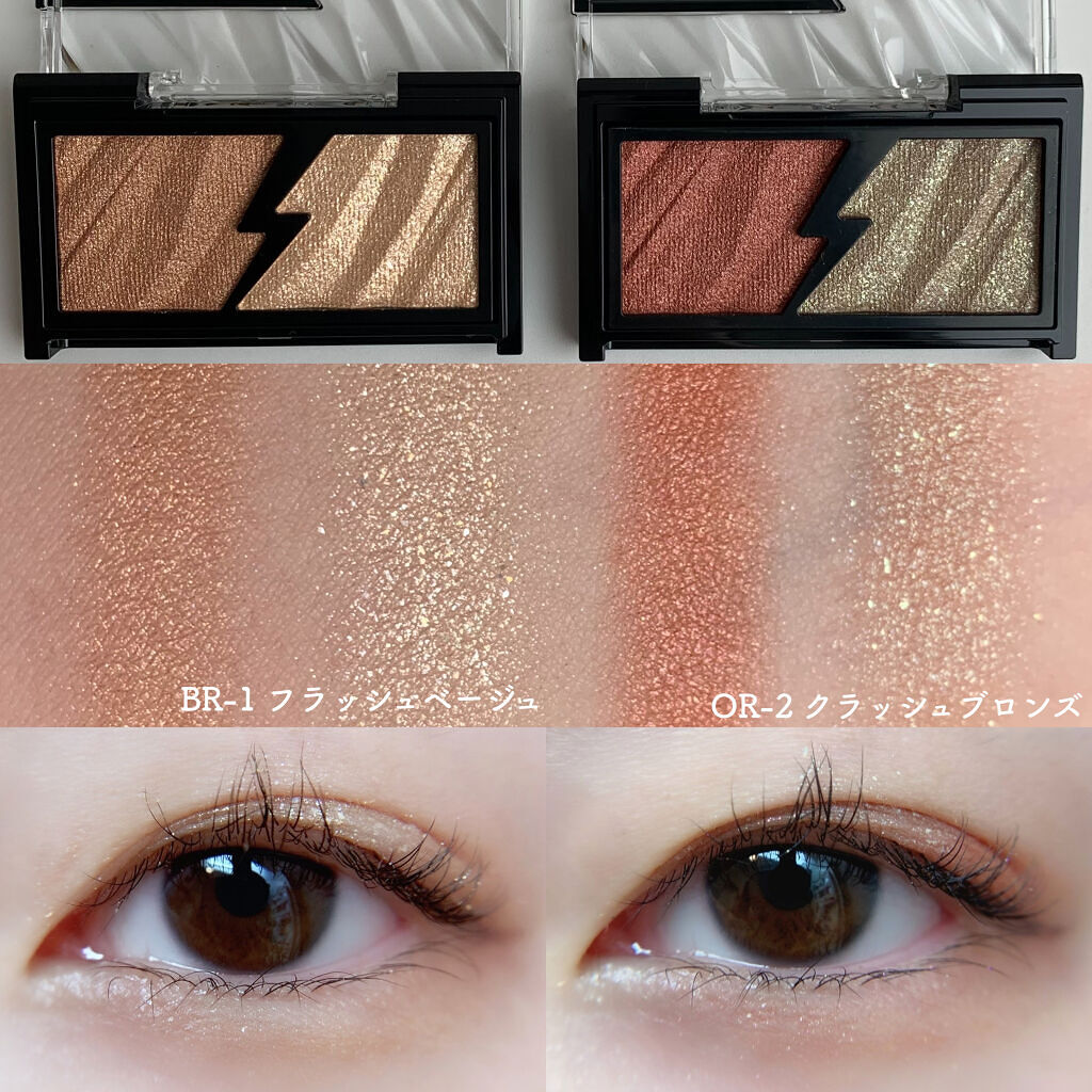 - 質感の違う2つの輝きで火花がクラッシュしたような発光感のある目元印象をつくるアイシャドウ。 まぶたにピタッと密着して、大粒ラメも落ちにくい処方設計。 繊細なカラーパールがきらめくエレクトリカルカラーと存在感のある大粒グリッターでまぶしい輝きを演出するフラッシュグリッターの2つの質感を掛け合わせて、輝き自由自在。 目元以外にも頬や鼻筋のハイライトに使える。