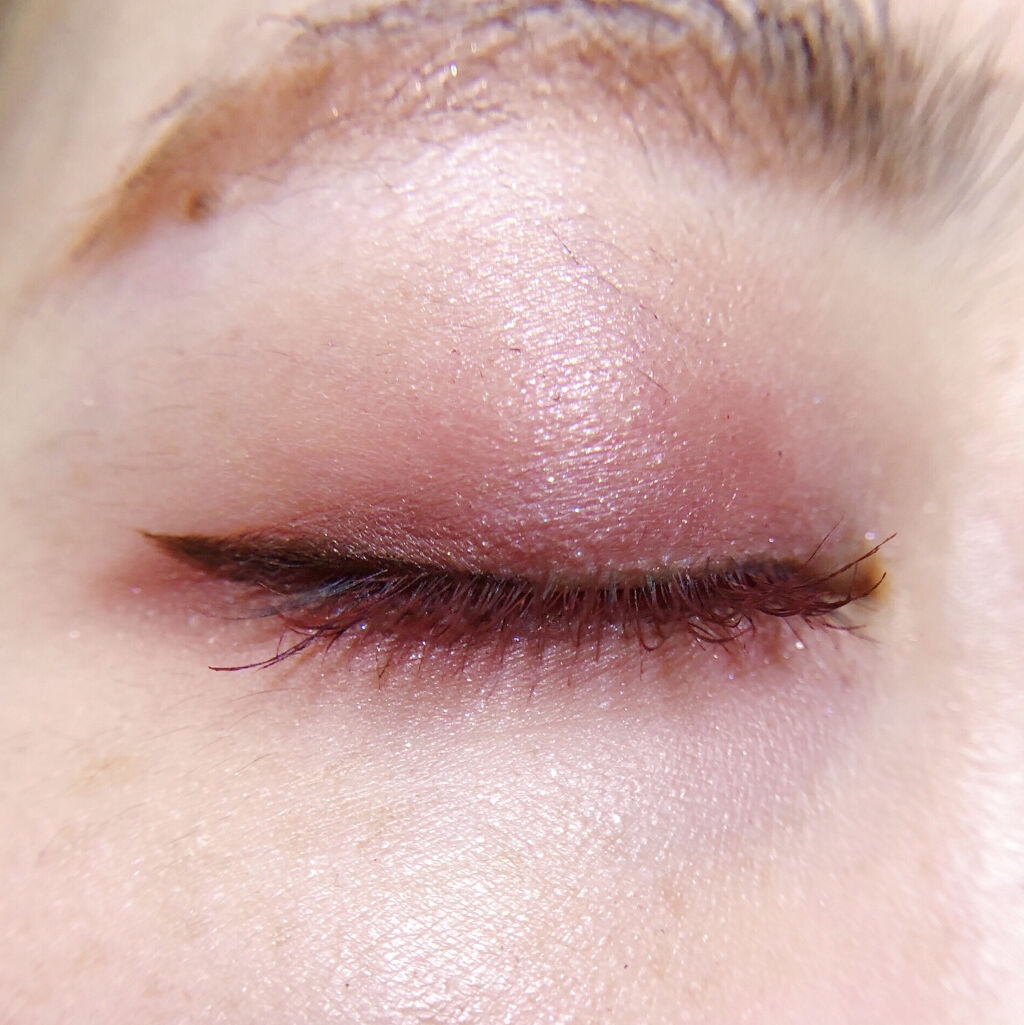 やっぱりめっちゃくすみました😇← でもツヤ感やラメ具合や粉質はさすが👏 仕上がりはほんとめちゃくちゃよし✨ アイライナーも、シュッと引いたらちゃんと細い線が描けたしいい感じ☺️
