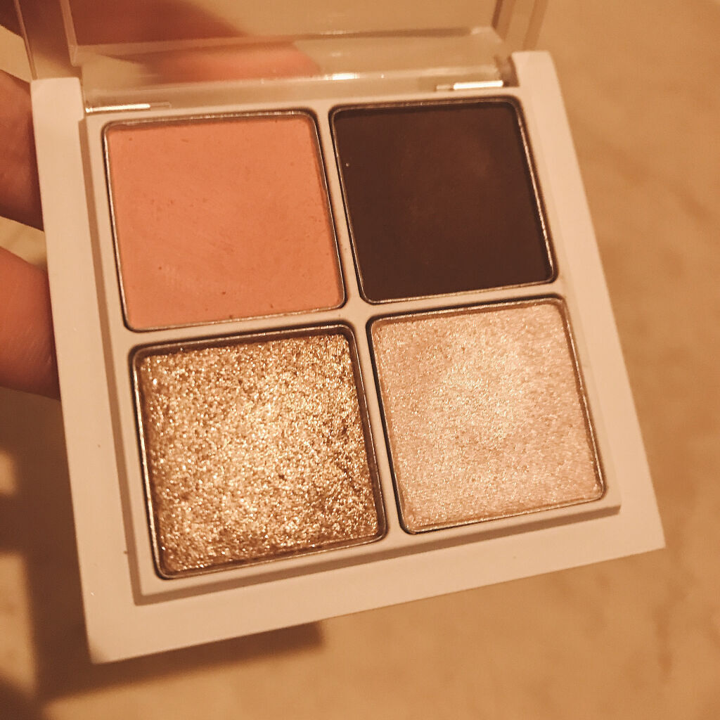4色が似てないから一個で色んな部位のメイクが出来る ベースカラーがキャンメイクの右上にめっちゃ似ててメインカラーがキャンメイクの左下に似てる キャンメイクの左上とロムアンドの左上だとロムアンドの方がオレンジっぽくてキャンメイクの方がベージュっぽい。 締め色は左下に似てる 左上と下真ん中を抜いてラメを足したようなパレット