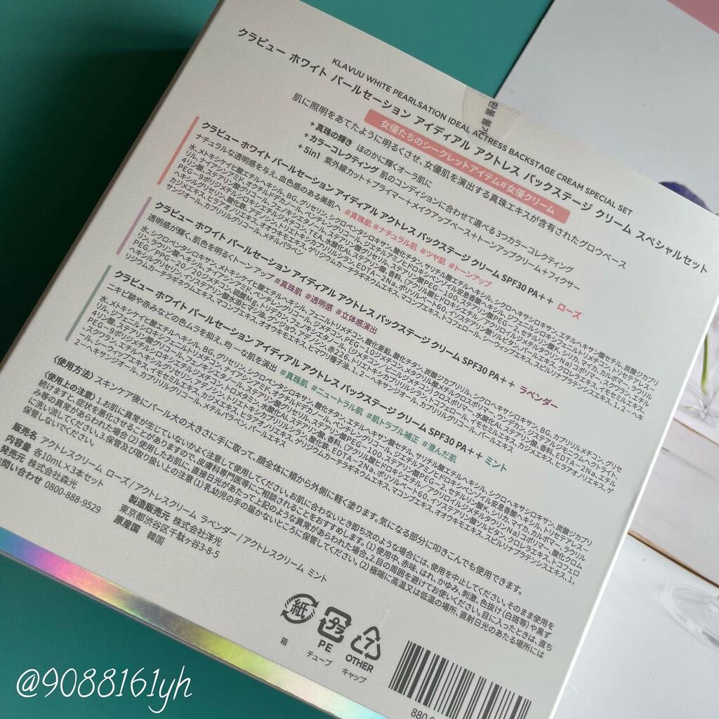 BeautyMeets企画でいただきました。#KLAVUUホワイトパールセーションアイデアルアクトレスバックステージクリームスペシャルセット3色を試せる豪華セットです(^-^)☆ローズ:くすんだ肌トーンを血色のある生き生きとトーン補正し、お肌...