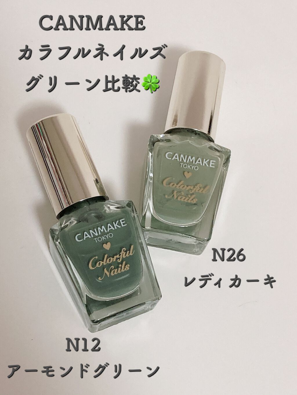 冬のネイルはくすんだグリーンネイル🌿 キャンメイクのカラフルネイルズを使ったグリーン系ネイル。 パールの入ったカーキグリーンと単色のカーキグリーンのツートンネイル。 簡単でかわいいです💚