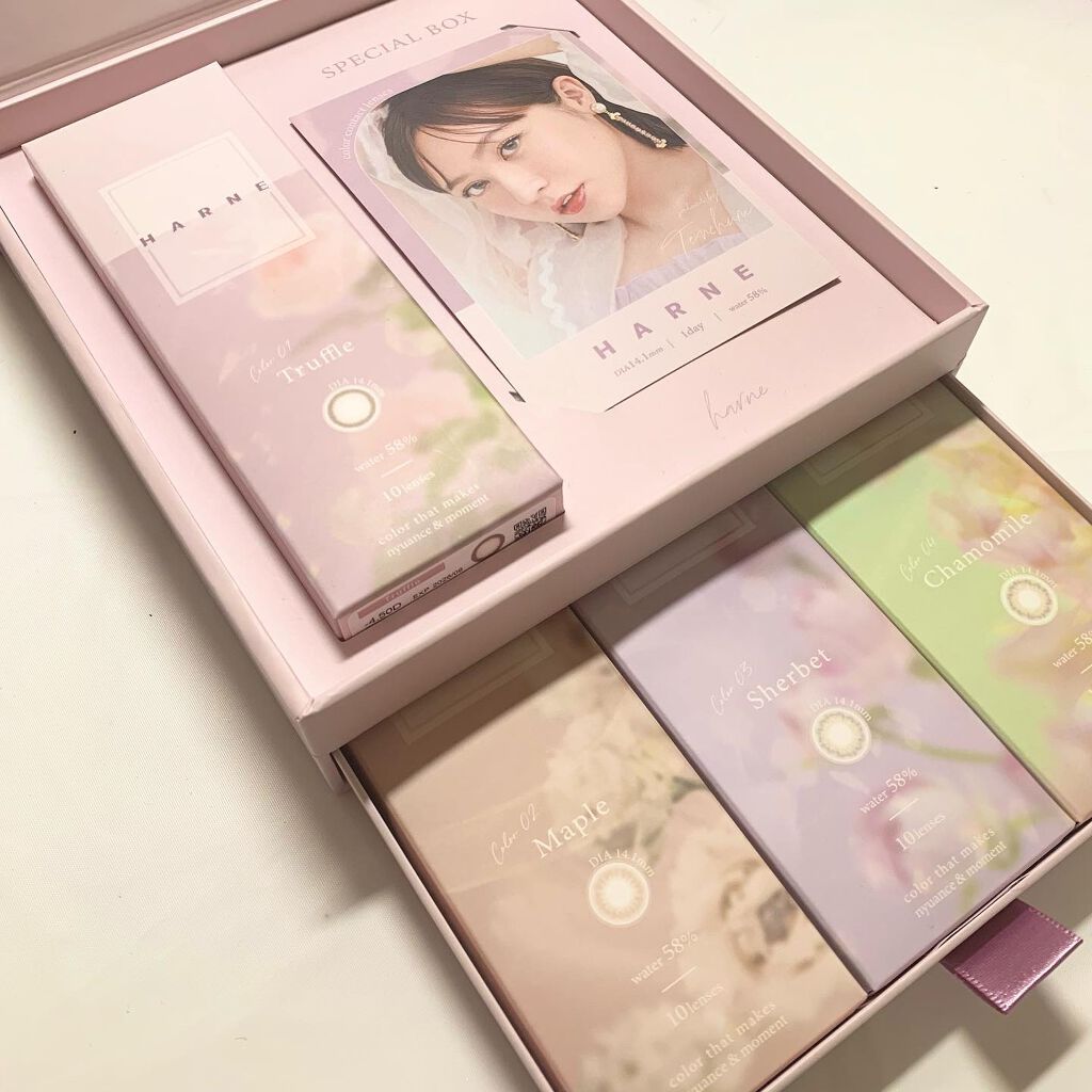 HARNEのAI級に盛れる新色2色です✨ 今回の新色2色は細ふちで盛れるレンズ♡ 色素薄い系のミルキーベージュカラーでピュアな愛されeyeに♡ ダークグレージュ×ニュアンスブルー ワンホン系にも韓国系にもなれる青みグレーでトレンドっぽeyeに♥