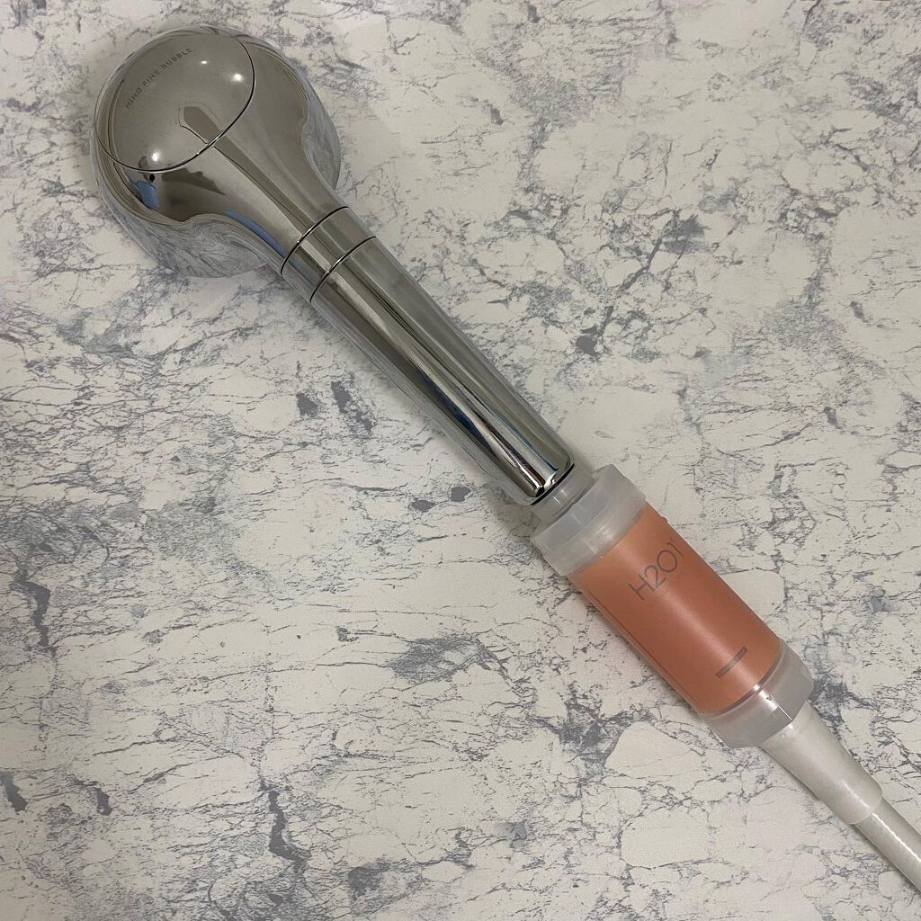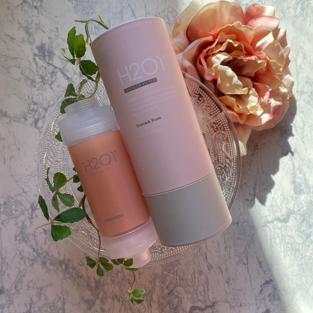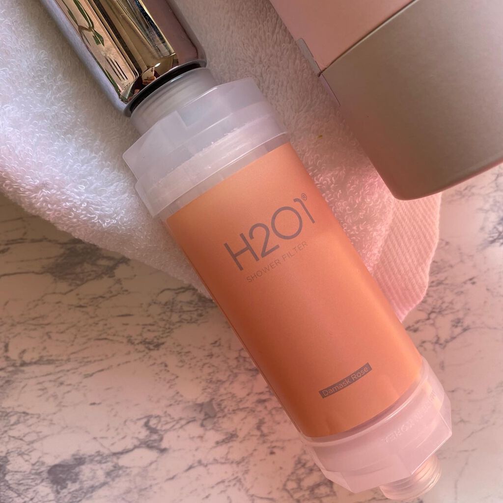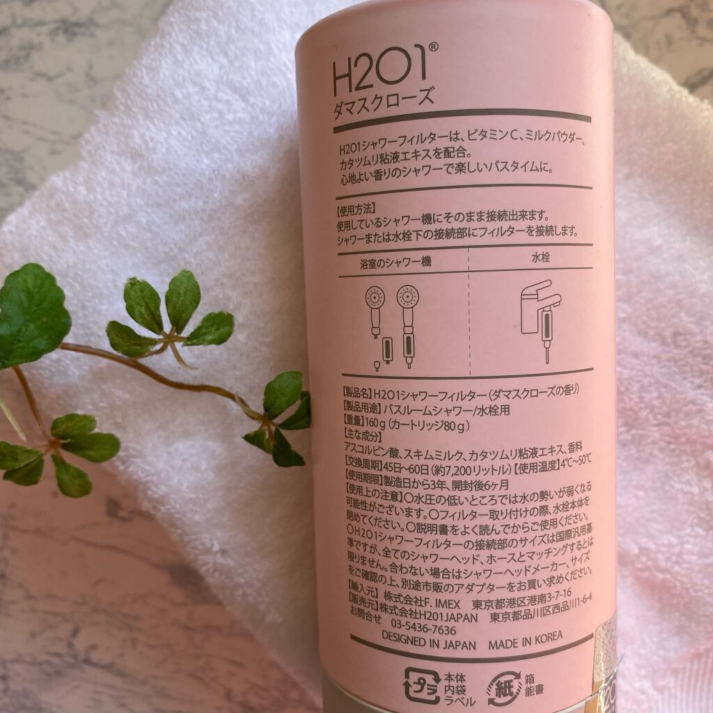 シャワーにつけて浴びるだけ♪ フィルターの中にダマスクローズの香りのビタミンやスキンミルクなどが入っていてとてもリッチな気分 水道水の塩素、カルキなども除去 香りは選べるんですよ✨ バスタイムが優雅になります😍