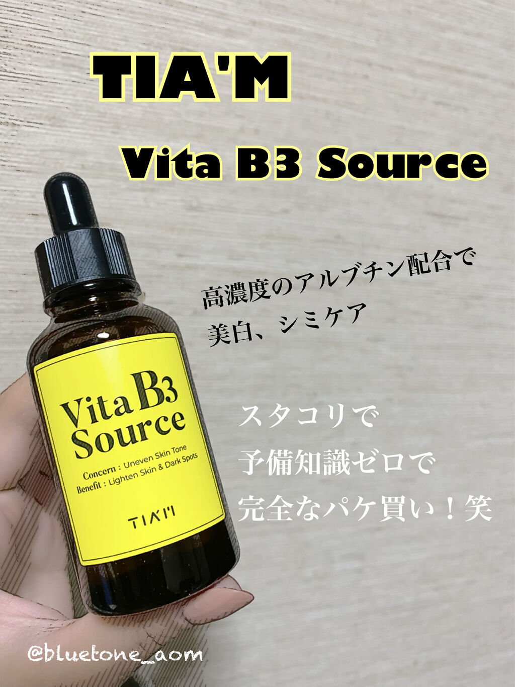 メラニン生成を抑制するナイアシンアミド(ビタミンB3)を高配合🌸 炎症を鎮めるアラントインが肌を鎮静&保湿✨️ ビタミン爆弾美容液💣と注目のTIAM Vita B3ソース✨️ 気になるシミ*に使ってるよ🥹🥹🥹 贅沢な美容液なのに低価格…!!😳💓 手に入れやすさがたまらない🥳