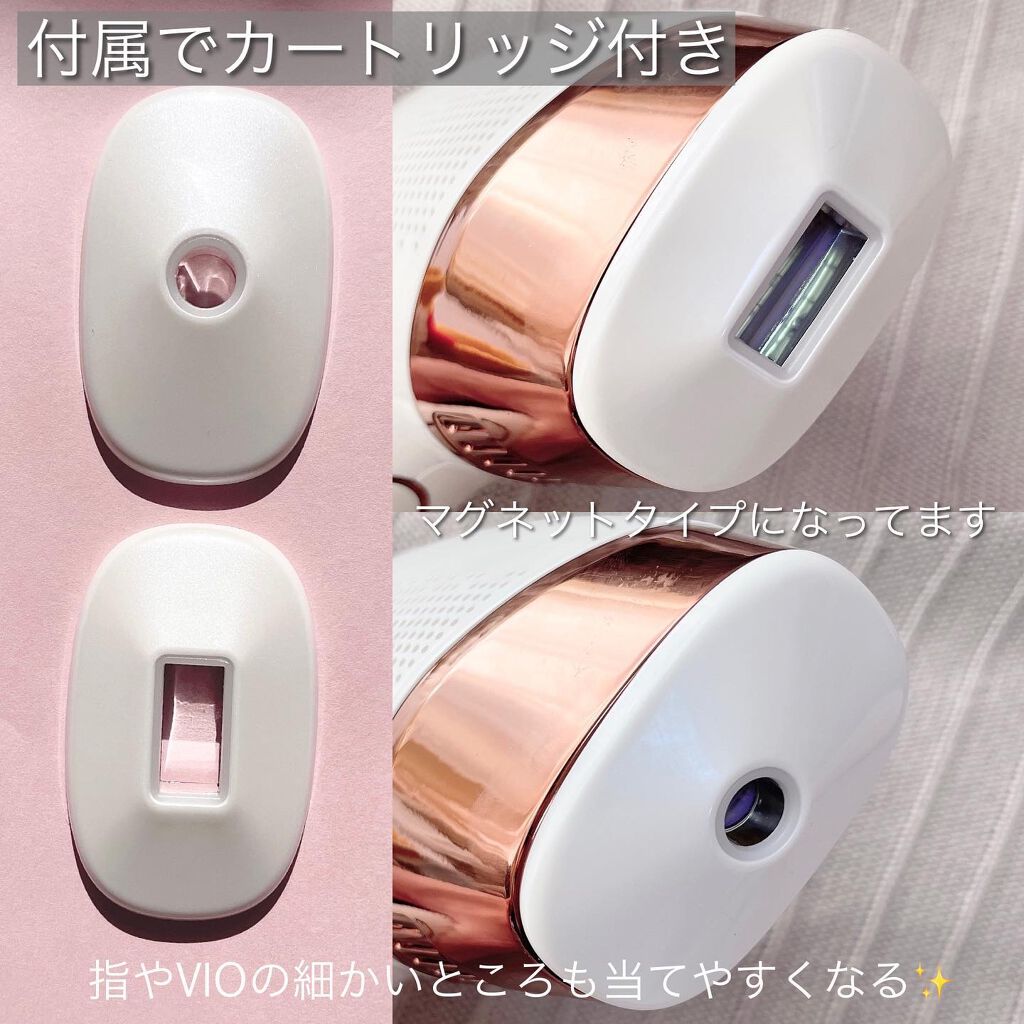 - ●持ちやすいデザインで手軽に冷感ムダ毛ケア ・LED液晶ディスプレイ LED液晶ディスプレイ搭載で、照射数やモードが一目瞭然! ・冷却クーリング機能:冷却クーリング機能搭載で、刺激を感じにくく、肌へのダメージも抑えながらムダ毛ケアができる! ・照射数:60万回 1台あれば家族やカップルで共有できる! ・デザイン:ドライヤー型のデザインで持ちやすく、カートリッジが付属しているので 狭い範囲の照射もらくらく! ・全身対応/男女使用可能:目の周りや、唇以外は全身に使える! また、女性だけでなく男性にもオススメ!