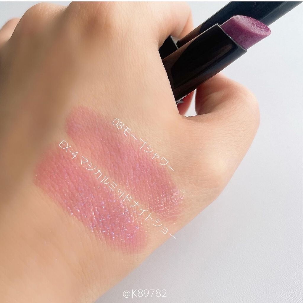 - <01 欲望の塊> テトライソステアリン酸ジペンタエリスリチル、トリ(カプリル酸/カプリン酸)グリセリル、オクチルドデカノール、ラウロイルグルタミン酸ジ(フィトステリル/オクチルドデシル)、ビスアルキル(C16-18)グリセリルウンデシルジメチコン、イソノナン酸イソトリデシル、水添ポリイソブテン、ラウロイルグルタミン酸ジ(オクチルドデシル/フィトステリル/ベヘニル)、パラフィン、合成ワックス、ダイマージリノール酸(フィトステリル/イソステアリル/セチル/ステアリル/ベヘニル)、マイクロクリスタリンワックス、水添マイクロクリスタリンワックス、ヒドロキシステアリン酸エチルヘキシル、トコフェロール、ホホバ種子油、オリーブ果実油、アーモンド油、(エチレン/プロピレン)コポリマー、ポリエチレン、ジメチコン、(+/-)(チタン/酸化チタン)焼結物、マイカ、ラウロイルアスパラギン酸Na、ラウロイルリシン、塩化亜鉛、酸化チタン、酸化鉄、水酸化Al、硫酸Ba、トリイソステアリン酸イソプロピルチタン、酸化スズ、ホウケイ酸(Ca/Al)、合成フルオロフロゴパイト、黄4、黄5、赤104(1)、赤201、赤202 <02 ピンクバナナ> テトライソステアリン酸ジペンタエリスリチル、トリ(カプリル酸/カプリン酸)グリセリル、オクチルドデカノール、ラウロイルグルタミン酸ジ(フィトステリル/オクチルドデシル)、ビスアルキル(C16-18)グリセリルウンデシルジメチコン、イソノナン酸イソトリデシル、水添ポリイソブテン、ラウロイルグルタミン酸ジ(オクチルドデシル/フィトステリル/ベヘニル)、パラフィン、合成ワックス、ダイマージリノール酸(フィトステリル/イソステアリル/セチル/ステアリル/ベヘニル)、マイクロクリスタリンワックス、水添マイクロクリスタリンワックス、ヒドロキシステアリン酸エチルヘキシル、トコフェロール、ホホバ種子油、オリーブ果実油、アーモンド油、(エチレン/プロピレン)コポリマー、ポリエチレン、ジメチコン、(+/-)(チタン/酸化チタン)焼結物、マイカ、ラウロイルアスパラギン酸Na、ラウロイルリシン、塩化亜鉛、酸化チタン、酸化鉄、水酸化Al、硫酸Ba、トリイソステアリン酸イソプロピルチタン、酸化スズ、ホウケイ酸(Ca/Al)、合成フルオロフロゴパイト、黄4、黄5、赤104(1)、赤201、赤202 <03 陽炎> テトライソステアリン酸ジペンタエリスリチル、トリ(カプリル酸/カプリン酸)グリセリル、オクチルドデカノール、ラウロイルグルタミン酸ジ(フィトステリル/オクチルドデシル)、ビスアルキル(C16-18)グリセリルウンデシルジメチコン、イソノナン酸イソトリデシル、水添ポリイソブテン、ラウロイルグルタミン酸ジ(オクチルドデシル/フィトステリル/ベヘニル)、パラフィン、合成ワックス、ダイマージリノール酸(フィトステリル/イソステアリル/セチル/ステアリル/ベヘニル)、マイクロクリスタリンワックス、水添マイクロクリスタリンワックス、ヒドロキシステアリン酸エチルヘキシル、トコフェロール、ホホバ種子油、オリーブ果実油、アーモンド油、(エチレン/プロピレン)コポリマー、ポリエチレン、ジメチコン、(+/-)(チタン/酸化チタン)焼結物、マイカ、ラウロイルアスパラギン酸Na、ラウロイルリシン、塩化亜鉛、酸化チタン、酸化鉄、水酸化Al、硫酸Ba、トリイソステアリン酸イソプロピルチタン、酸化スズ、ホウケイ酸(Ca/Al)、合成フルオロフロゴパイト、黄4、黄5、赤104(1)、赤201、赤202 <04 パンプキンワイン> テトライソステアリン酸ジペンタエリスリチル、トリ(カプリル酸/カプリン酸)グリセリル、オクチルドデカノール、ラウロイルグルタミン酸ジ(フィトステリル/オクチルドデシル)、ビスアルキル(C16-18)グリセリルウンデシルジメチコン、イソノナン酸イソトリデシル、水添ポリイソブテン、ラウロイルグルタミン酸ジ(オクチルドデシル/フィトステリル/ベヘニル)、パラフィン、合成ワックス、ダイマージリノール酸(フィトステリル/イソステアリル/セチル/ステアリル/ベヘニル)、マイクロクリスタリンワックス、水添マイクロクリスタリンワックス、ヒドロキシステアリン酸エチルヘキシル、トコフェロール、ホホバ種子油、オリーブ果実油、アーモンド油、(エチレン/プロピレン)コポリマー、ポリエチレン、ジメチコン、(+/-)(チタン/酸化チタン)焼結物、マイカ、ラウロイルアスパラギン酸Na、ラウロイルリシン、塩化亜鉛、酸化チタン、酸化鉄、水酸化Al、硫酸Ba、トリイソステアリン酸イソプロピルチタン、酸化スズ、ホウケイ酸(Ca/Al)、合成フルオロフロゴパイト、黄4、黄5、赤104(1)、赤201、赤202 <05 ダークフィグ> テトライソステアリン酸ジペンタエリスリチル、トリ(カプリル酸/カプリン酸)グリセリル、オクチルドデカノール、ラウロイルグルタミン酸ジ(フィトステリル/オクチルドデシル)、ビスアルキル(C16-18)グリセリルウンデシルジメチコン、イソノナン酸イソトリデシル、水添ポリイソブテン、ラウロイルグルタミン酸ジ(オクチルドデシル/フィトステリル/ベヘニル)、