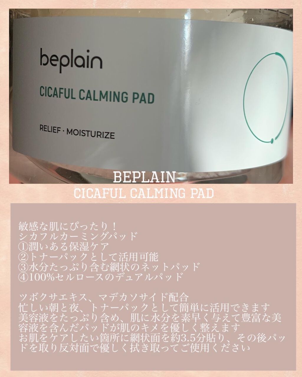 🌿beplainシカフルカーミングパッドツボクサエキスとマデカソサイド入ってて、鎮静ケアにぴったりなトナーパッド。ガーゼ面が結構ザリザリで硬めだから、角質ケアはしっかりできるけど刺激強めかな私はトナーパッドに角質ケアはあんまり求めてなくて、...