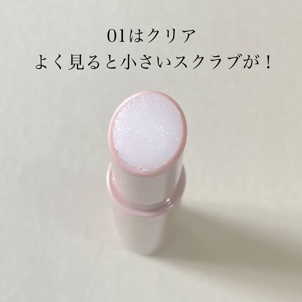 - 塗るだけで手軽に「柔らか唇エステ」 潤い&角質ケアができるリップスクラブ。 唇の上で溶けるお砂糖のスクラブが古い角質を優しくオフして、なめらかな唇に整えます。 リップパックした後のような高保湿が持続します。 拭き取り・洗い流し不要なので、外出先でも手軽にケアできます。 清涼感のある使い心地 ・スクラブ目的として砂糖の粒子を配合しておりますが、唇の状態によって刺激に感じられる可能性がございますのでご注意ください。 ・強くこすると刺激を感じることがあります。こすりすぎないように注意してください。 ・大変柔らかいバームですので、1㎜程度繰り出してお使いください。 ・一度繰り出したバームは戻りませんのでご注意ください。