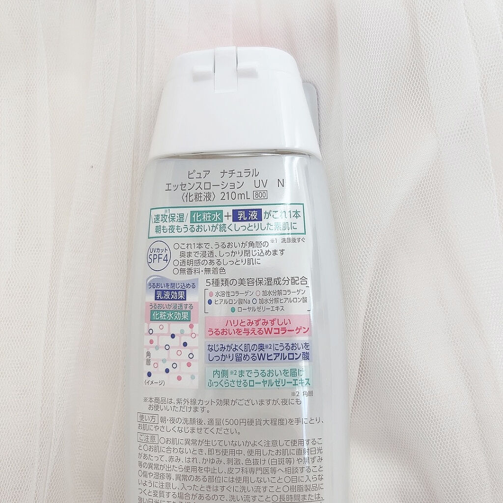 pdcピュアナチュラルエッセンスローションUVスキンケアをするのが面倒くさい時にとりあえずこれを使用してます😂❣️化粧水と乳液これひとつで乾燥対策にも✨乾燥による敏感肌にも🆗テクスチャーはとろっとしたみずみずしい乳液タイプ。肌馴染みがよくスー...