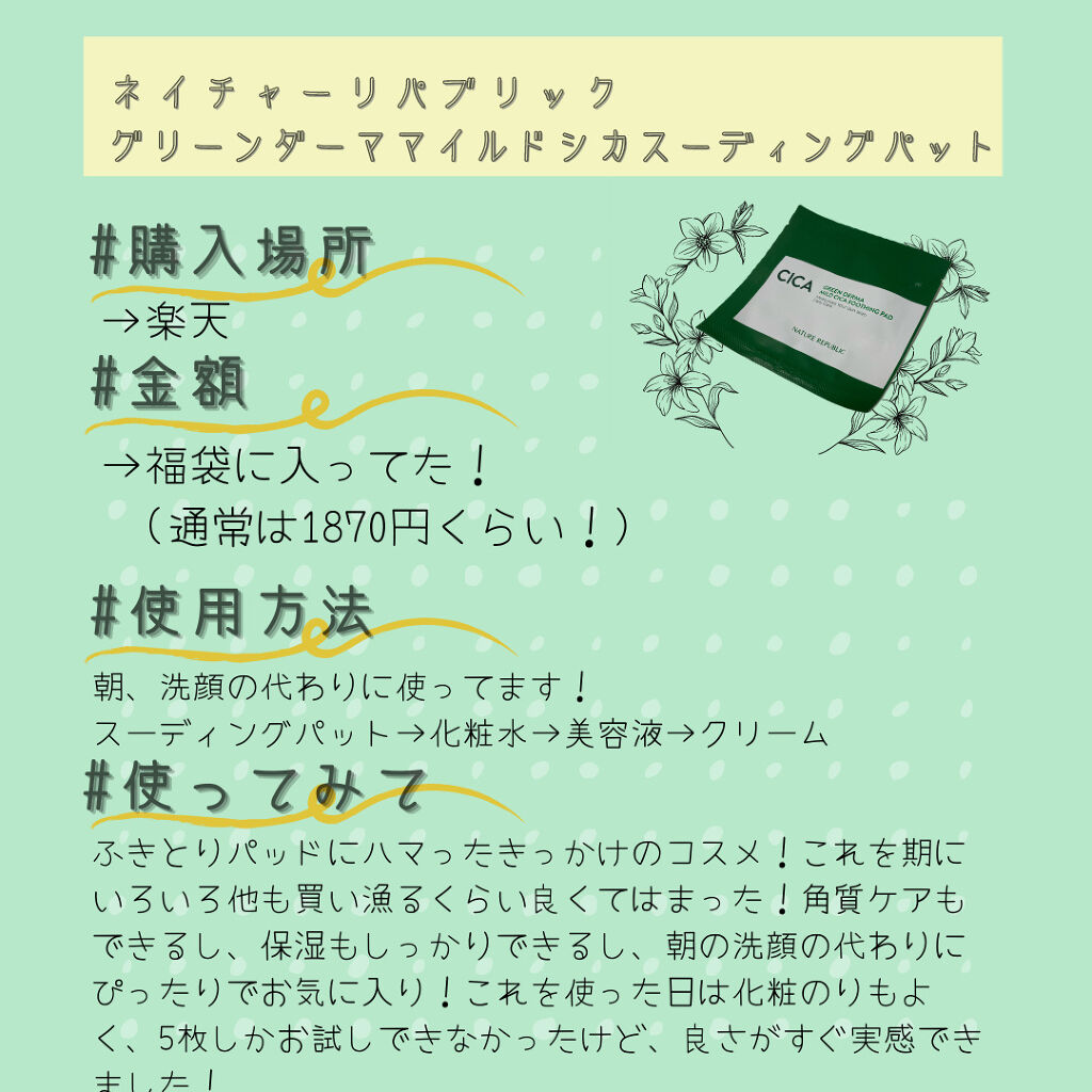 商品詳細情報ネイチャーリパブリック グリーンダーマCICAエッセンシャルパッド