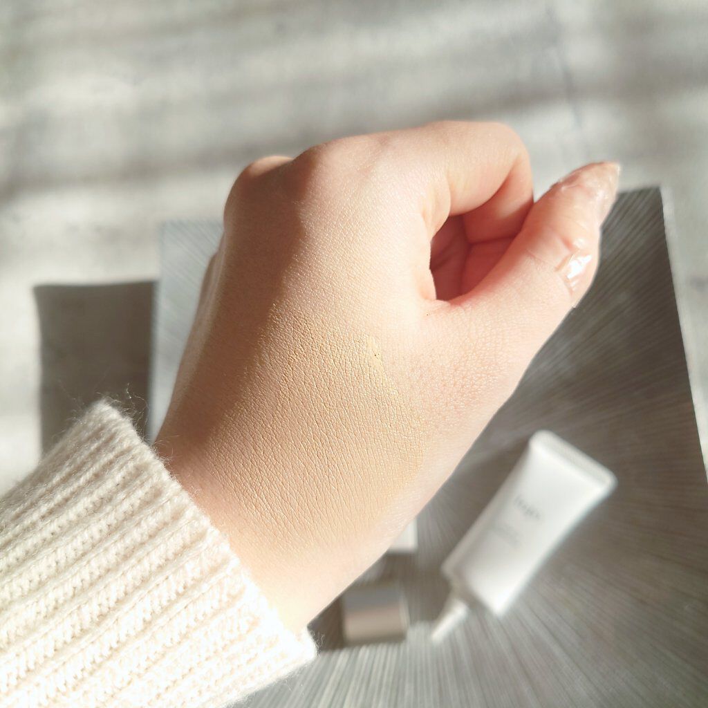 のびが良くてしっとりしてるのにベタつきません。 うっすらフレッシュフローラルブーケの香りがして気分がいいです🌼 01ナチュラルタイプは、肌なじみが良く誰でも使いやすいです。