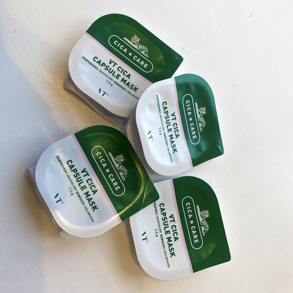VTCICAカプセルマスクコレ割と良かった〜夏にいい感じする❤️少しスースーするけど鎮静されて洗い流す時少し落ち辛いけどツルツルってなった〜塗る時はスパチュラで塗ったら手は汚れなかったしかもトーンアップもしたし韓国で4つで3000wだったかな...