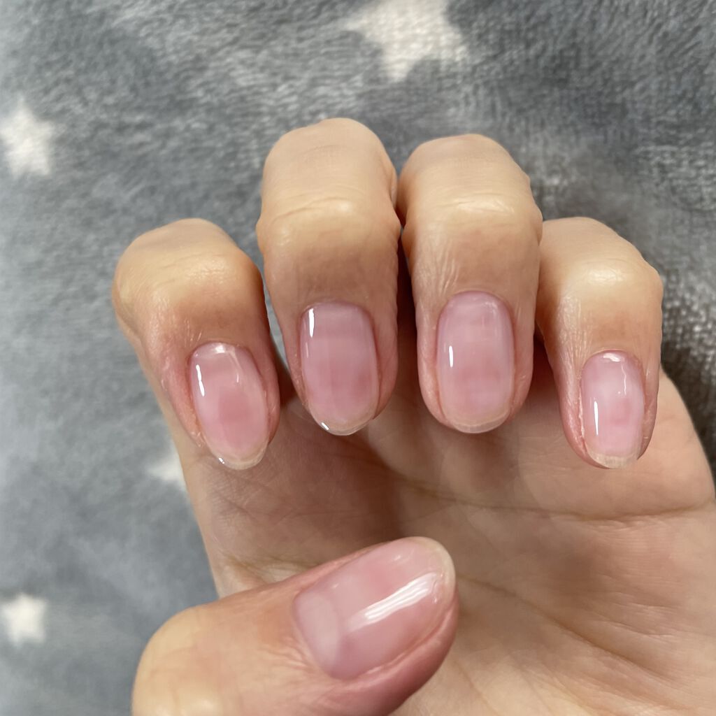 私の爪は薄くてペラペラ 食器洗いなんてしたら速攻ふにゃふにゃ… マニキュア塗ってネイルオイルでケアしても ネイルベッドもハイポニキウムも なかなか育たなかったです💦 前回のネイルから1ヶ月と1週間でオフしたら 結構ネイルベッドが育ってましたー! ジェルネイルで爪を強化して居たので 今回育ってくれたのかな?と 嬉しい放ったらかし爪育でした(笑) 時間が無くてとりあえずベースだけ… バレンタインネイルをしたいけれど クリアもツヤツヤナチュラルで これでいいんじゃないかと思い始めた…(笑) なんとかバレンタインに間に合わせたいな🍫