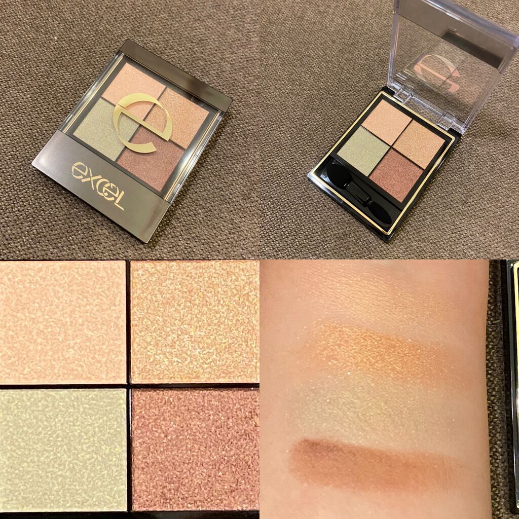 - 1.重ねてもくすまないクリアな発色。ナチュラルに溶け合う絶妙4カラー。 ツヤタイプ(左上・左下カラー):アイホール全体にぼかしたり、目尻へのポイント使いも。 ラメタイプ(右上カラー):アイホール中心や下まぶたにきらめきのアクセント。 マットタイプ(右下カラー):単色で陰影を付けたり、ツヤタイプと重ねてニュアンスをプラス。 2.うっとりするほどリッチな質感で粉飛びしないのに、軽いタッチで伸びて重ねやすいテクスチャー。 3.スクワラン(保湿)配合で目元の乾燥を防ぎます。 [PERFORMANCE] 色と質感の重ね着を楽しむ、ファッション感覚アイシャドウパレット [DESIGN] ・まぶたにひっかからない、なめらかな上質チップ ・薄型コンパクトだからポーチの中でかさばらない [QUALITY] 1.重ねてもくすまないクリアな発色 ナチュラルに溶け合う絶妙4カラー 2.パールの重ね技でまぶたに極上のツヤ感 微細多色 カラーパール 銀コーティング ガラスパール* excel GOLD-MIX処方(金パール配合)* (*右上のシャイニーカラーのみ) 3.うっとりするほどリッチな質感で粉飛び知らず!なのに、軽いタッチで伸びて重ねやすい 4.スクワラン(保湿)配合で目元の乾燥を防ぐ