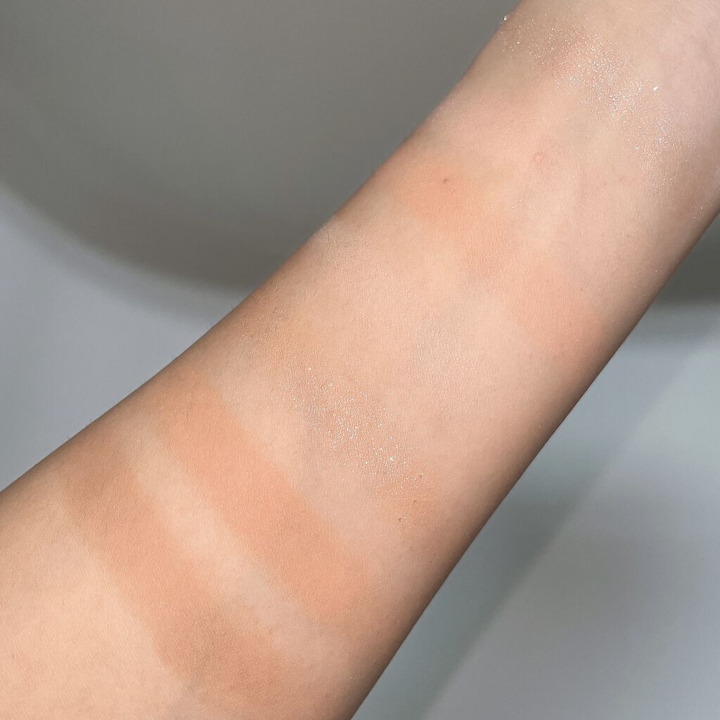 全体的に淡めです! イエベ向きな黄色みのあるブラウン系🤎 シマーなラメが可愛すぎる!! 密着度の高いラメでポンと乗せるだけで キラッキラ✨✨ 粉飛びもしないです! 発色はいいですが淡いので 初心者さんでも使いやすい!!!