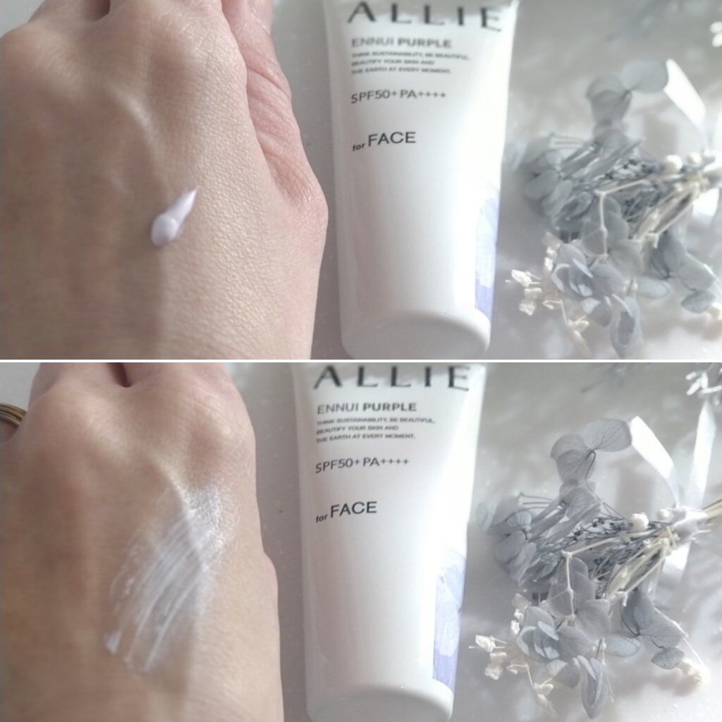 - 世界を想う 美しさつづく*1 日やけ止め おでかけも、マスクを外す機会も増える毎日に。 一部の国・地域・ビーチの規制に配慮した設計のビーチフレンドリー処方。 これ 1 本で、UV カット&顔色補整効果でクマ・くすみ・色ムラまでカバー! テカりにくく、くずれにくいノーファンデ UV*2 【ENNUI PURPLE】 くすみや毛穴をカバー 儚げな透明感のある顔印象続く 澄んだ気分を誘う 紫陽花しずく&セージの香り 【SUNNY APRICOT】 クマや毛穴をカバー いきいきとした血色感のある顔印象つづく 思わず出かけたくなる アプリコット&金木犀の香り 【SHERR BEIGE】 色ムラや毛穴をカバー 均一で抜け感のある顔印象つづく 自然で飾らない シトラスウッディ&パチュリの香り ●一部の国・地域・ビーチの規制に配慮した設計の「ビーチフレンドリー処方」 ●SPF50+・PA++++ ●汗・水 こすれに強く落ちにくい フリクションプルーフ・スーパーウォータープルーフ ●ベタつきにくい感触がつづく ●テカりにくくキレイな肌仕上がりがつづく ●環境に配慮した素材を使用したパッケージ採用 ●美容液成分(保湿)ヒアルロン酸Na配合 ●顔用 ●普段のメイククレンジングで落とせる ●マスク・タオル等につきにくい ●化粧下地効果 *1 スキンケア効果またはメイクアップ効果による肌仕上がりのこと *2 ファンデーション未使用時でも、自然なベースメイクが仕上がる日やけ止めのこと *3 チリ・ほこり・PM2.5・花粉等すべての微粒子汚れの付着を防ぐわけではありません 01:ENNUI PURPLE パープル 02:SUNNY APRICOT アプリコットピンク 03:SHEER BEIGE ミルキーベージュ