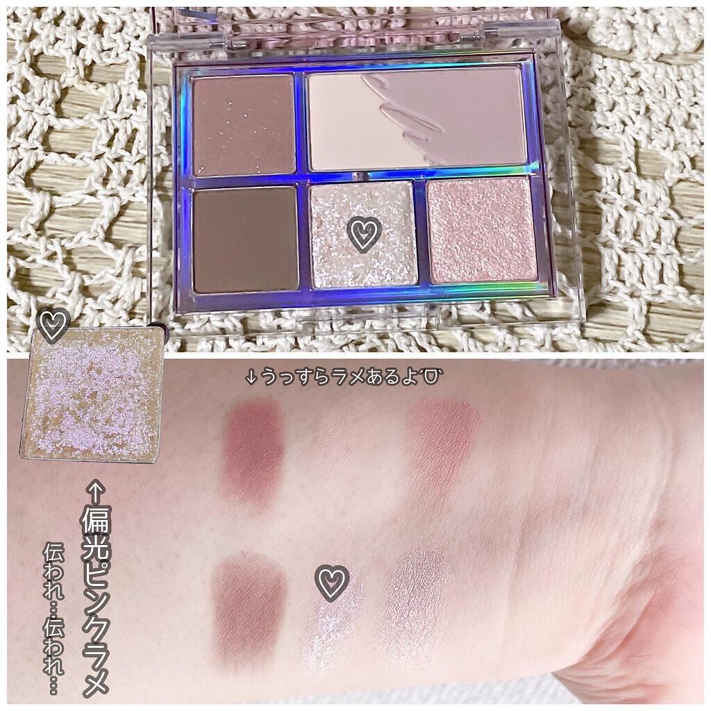 - 同系色陰影カラーと上品でクリアなグリッターの組み合わせの必要なカラーだけ詰め込んだミニアイパレット!