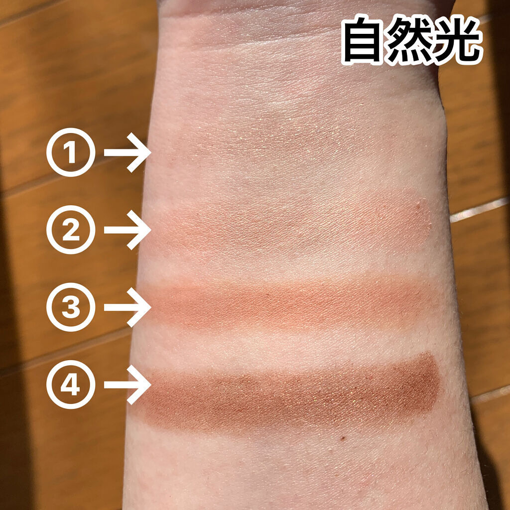 - ラメ・パール・マット3質感の4色アイシャドウ。 肌馴染みの良いベージュを基調としたカラー。ラメ・パール・マットの3質感を重ねて、自然にまぶたを強調し奥行のある大きな目元へ。 しっとり溶け込むような柔らかなパウダーなので、スルスル伸びてまぶたにピタッと密着。保湿成分(スクワラン・ホホバ種子油)配合。