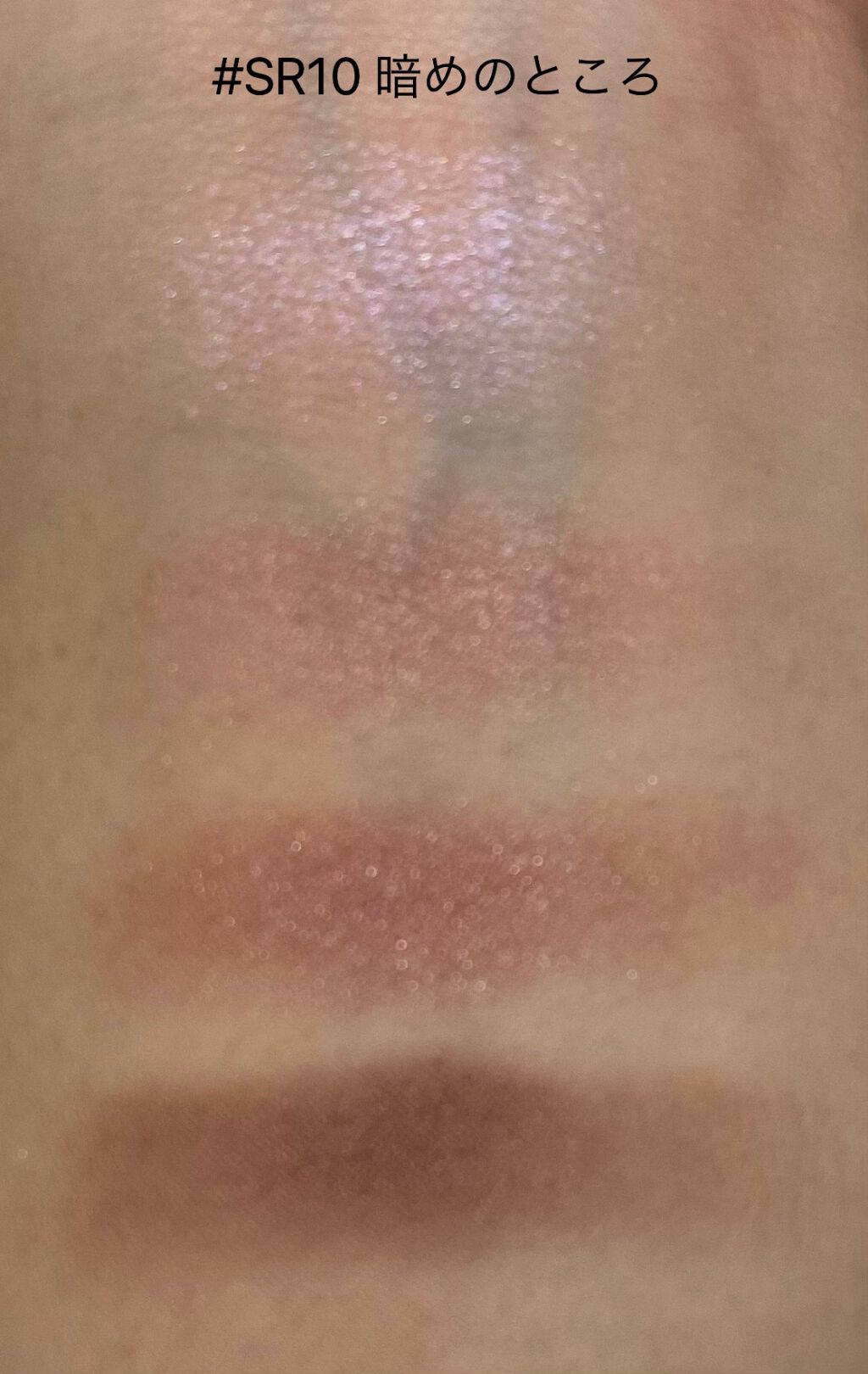 - <SR01 ベージュブラウン> トリエチルヘキサノイン、リンゴ酸ジイソステアリル、ラウリン酸亜鉛、イソステアリン酸水添ヒマシ油、ステアリン酸ソルビタン、スクワラン、ジメチコン、トコフェロール、メチルパラベン、(+/-)タルク、マイカ、金、酸化チタン、酸化鉄、水酸化Al、赤226 <SR02 リアルブラウン> トリエチルヘキサノイン、リンゴ酸ジイソステアリル、ラウリン酸亜鉛、イソステアリン酸水添ヒマシ油、ステアリン酸ソルビタン、スクワラン、ジメチコン、トコフェロール、メチルパラベン、(+/-)タルク、マイカ、金、酸化チタン、酸化鉄、水酸化Al、赤226 <SR03 ロイヤルブラウン> トリエチルヘキサノイン、リンゴ酸ジイソステアリル、ラウリン酸亜鉛、イソステアリン酸水添ヒマシ油、ステアリン酸ソルビタン、スクワラン、ジメチコン、トコフェロール、メチルパラベン、(+/-)タルク、マイカ、金、酸化チタン、酸化鉄、水酸化Al、赤226 <SR04 スモーキーブラウン> トリエチルヘキサノイン、リンゴ酸ジイソステアリル、ラウリン酸亜鉛、イソステアリン酸水添ヒマシ油、ステアリン酸ソルビタン、スクワラン、ジメチコン、トコフェロール、メチルパラベン、(+/-)タルク、マイカ、金、酸化チタン、酸化鉄、水酸化Al、赤226 <SR05 ウォームブラウン> トリエチルヘキサノイン、リンゴ酸ジイソステアリル、ラウリン酸亜鉛、イソステアリン酸水添ヒマシ油、ステアリン酸ソルビタン、スクワラン、ジメチコン、トコフェロール、メチルパラベン、(+/-)タルク、マイカ、金、酸化チタン、酸化鉄、水酸化Al、赤226 <SR06 センシュアルブラウン> トリエチルヘキサノイン、リンゴ酸ジイソステアリル、ラウリン酸亜鉛、イソステアリン酸水添ヒマシ油、ステアリン酸ソルビタン、スクワラン、ジメチコン、トコフェロール、メチルパラベン、(+/-)タルク、マイカ、金、酸化チタン、酸化鉄、水酸化Al、赤226 <SR07 マグノリアブラウン(限定)> トリエチルヘキサノイン、リンゴ酸ジイソステアリル、ラウリン酸亜鉛、イソステアリン酸水添ヒマシ油、ステアリン酸ソルビタン、スクワラン、ジメチコン、トコフェロール、メチルパラベン、(+/-)グンジョウ、コンジョウ、タルク、マイカ、金、酸化チタン、酸化鉄 <SR08 アクアティックブラウン> トリエチルヘキサノイン、リンゴ酸ジイソステアリル、ラウリン酸亜鉛、イソステアリン酸水添ヒマシ油、ステアリン酸ソルビタン、スクワラン、ジメチコン、トコフェロール、メチルパラベン、(+/-)グンジョウ、コンジョウ、タルク、マイカ、金、酸化チタン、酸化鉄 <SR09 ベビーブラウン> トリエチルヘキサノイン、リンゴ酸ジイソステアリル、ラウリン酸亜鉛、イソステアリン酸水添ヒマシ油、ステアリン酸ソルビタン、スクワラン、ジメチコン、トコフェロール、メチルパラベン、タルク、ホウケイ酸(Ca/Al)、マイカ、金、酸化チタン、酸化鉄、赤226 <SR10 ピオニーブラウン> トリエチルヘキサノイン、リンゴ酸ジイソステアリル、ラウリン酸亜鉛、イソステアリン酸水添ヒマシ油、ステアリン酸ソルビタン、スクワラン、ジメチコン、トコフェロール、メチルパラベン、グンジョウ、タルク、マイカ、金、酸化チタン、酸化鉄 <SR11 ブリックブラウン> トリエチルヘキサノイン、リンゴ酸ジイソステアリル、ラウリン酸亜鉛、イソステアリン酸水添ヒマシ油、ステアリン酸ソルビタン、スクワラン、ジメチコン、トコフェロール、メチルパラベン、タルク、マイカ、金、酸化チタン、酸化鉄、赤202、赤226 <SR12 デニッシュブラウン(限定)> トリエチルヘキサノイン、リンゴ酸ジイソステアリル、ラウリン酸亜鉛、イソステアリン酸水添ヒマシ油、ステアリン酸ソルビタン、スクワラン、ジメチコン、シリカ、トコフェロール、ホウケイ酸(Ca/Al)、酸化スズ、メチルパラベン、グンジョウ、タルク、マイカ、金、酸化チタン、酸化鉄、赤226 <SR01'23 ベージュブラウン(限定デザイン)> トリエチルヘキサノイン、リンゴ酸ジイソステアリル、ラウリン酸亜鉛、イソステアリン酸水添ヒマシ油、ステアリン酸ソルビタン、スクワラン、ジメチコン、トコフェロール、メチルパラベン、(+/-)タルク、マイカ、金、酸化チタン、酸化鉄、水酸化Al、赤226 <SR03'23 ロイヤルブラウン(限定デザイン)> トリエチルヘキサノイン、リンゴ酸ジイソステアリル、ラウリン酸亜鉛、イソステアリン酸水添ヒマシ油、ステアリン酸ソルビタン、スクワラン、ジメチコン、トコフェロール、メチルパラベン、(+/-)タルク、マイカ、金、酸化チタン、酸化鉄、水酸化Al、赤226 <SR11'23 ブリックブラウン(限定デザイン)> トリエチルヘキサノイン、リンゴ酸ジイソステアリル、ラウリン酸亜鉛、イソステアリン酸水添ヒマシ油、ステアリン酸ソルビタン、スクワラン、ジメチコン、トコフェロール、メチルパラベン、(+/-)タルク、マイカ、金、酸化チタン、酸化鉄、水酸化Al、赤226 <SR13 ヘーゼルブラウン(限定)> トリエチルヘキサノイン、リンゴ酸ジイソス