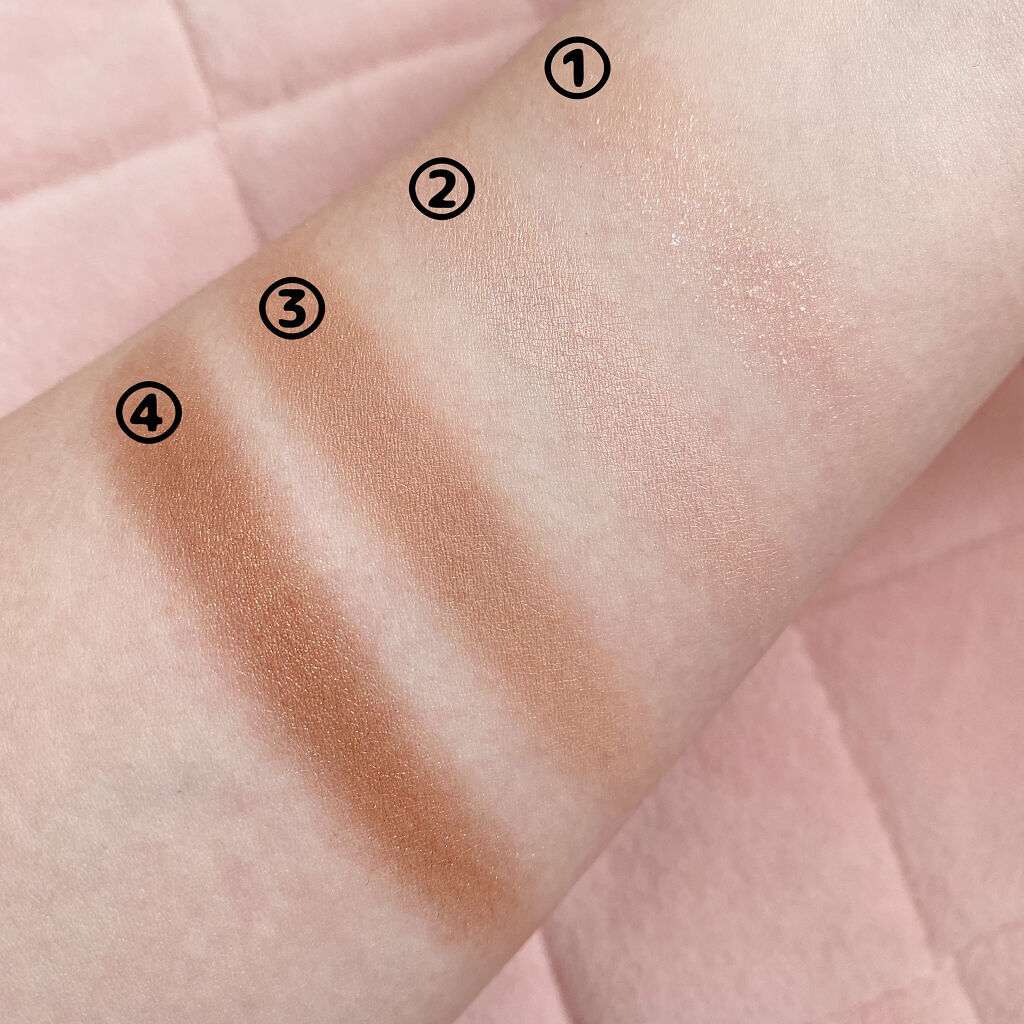 大きなラメで1番キラキラしてたのは01 シャイニーピンク💗涙袋にいい感じ 🤩 02 パールベージュ は 、ラメってよりは まさにパール💎まぶた全体にぼかして使うのが適してるかな 💭 04 ミルクブラウン は 、細かいラメが入ってます!✨目のキワに塗るのがいい感じ🖋 細くて柔らかいスティックなので出しすぎて折れちゃうのに注意 ⚠️ 粉とびしなくて 、わりとしっかり密着するので落ちにくいなーって感じ 💭