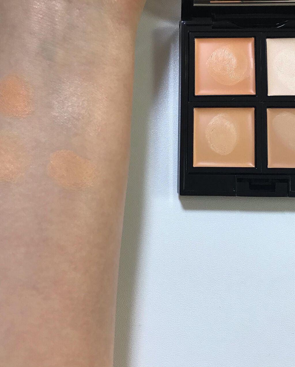 目元のクマ、小鼻の赤み消しに大活躍でした⭐︎⭐︎ 時間が経っても乾燥やヒビ割れが気にならず、とても優秀なコンシーラーでした◎ 色と光を巧みに操る4色のコンシーラーパレット⭐︎⭐︎⭐︎ テクスチャーはオイルインのように滑らか。粉っぽくならないのが好き⭐︎ 02はオレンジ味が強い印象なので目元のクマが気になる方に特にオススメ!!