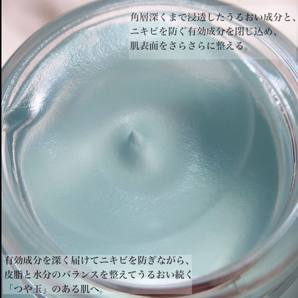 - 有効成分を深く届けてニキビを防ぎながら、皮脂と水分のバランスを整えてうるおい続く、「つや玉」のある肌へ導く。 みずみずしいクリームが、肌にのせるとさらさらにチェンジ。朝も夜も気持ちよく使えます。