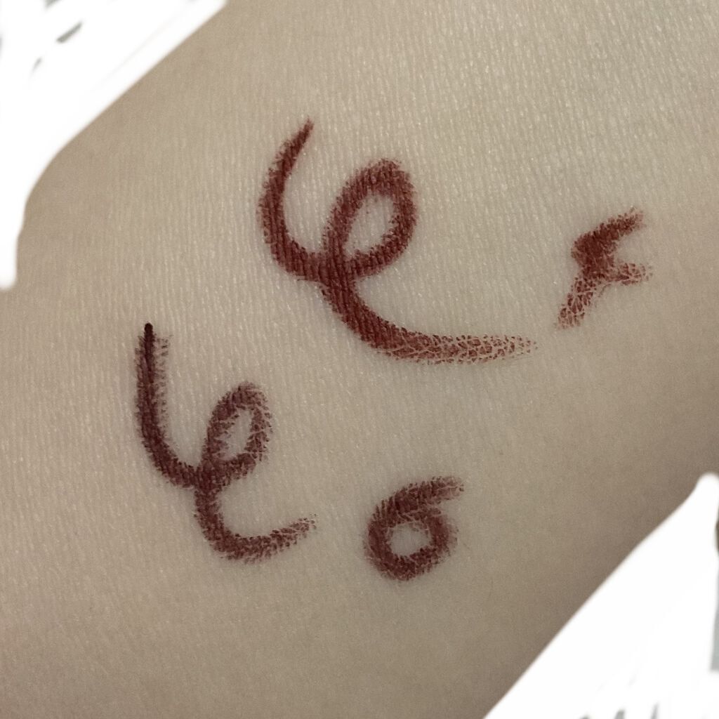 やわらかくてするする描ける ・肌馴染み◎ ・しっかり発色 ・びっくりするほど落ちにくい バズってた色ってガーネットバーガンディだったっけな?と思い、とりあえず買ってみました。 店頭でテスターを軽率に手の甲に描くと強めに擦っても落ちないので注意です⚠️