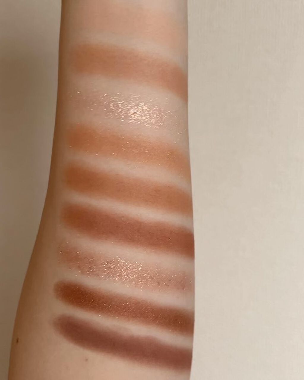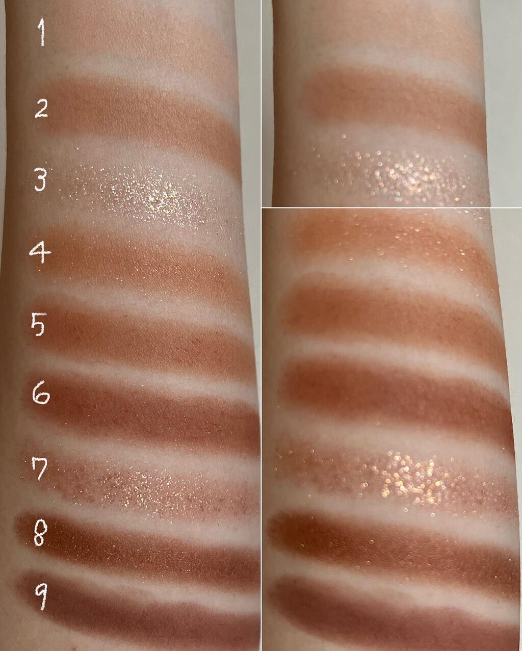奥ゆかしいチョコレートブラウンムードを詰め込んだアイシャドウパレット🧸 色味はもちろん、アイシャドウが立体的になっていて、本物のチョコレートみたいな、見た目からして可愛い❣️ マットからラメ、グリッターまでバリエーション豊富な9色で、思いのままにアイメイクができる万能パレット🐰